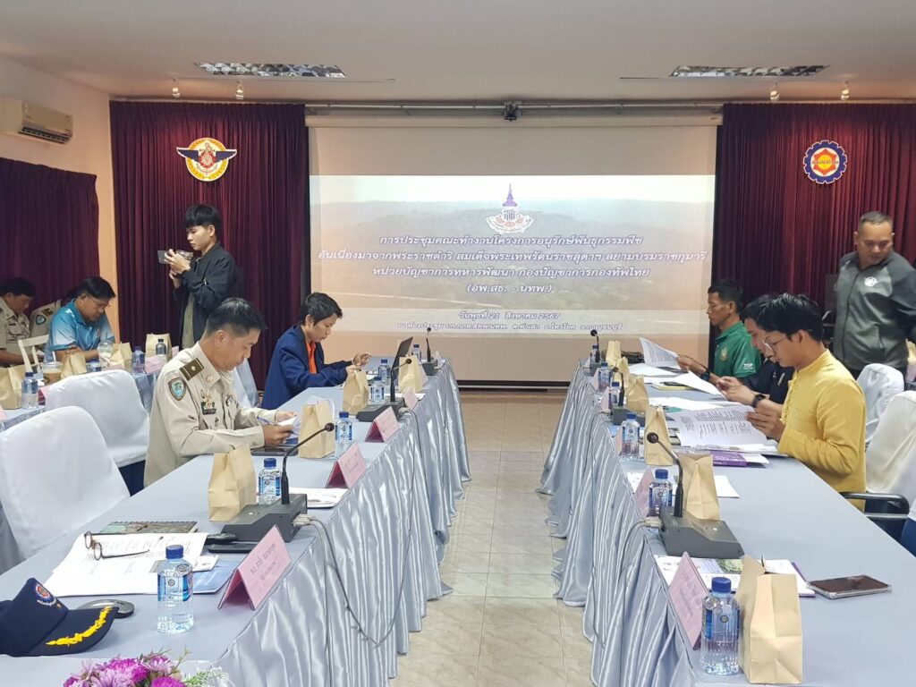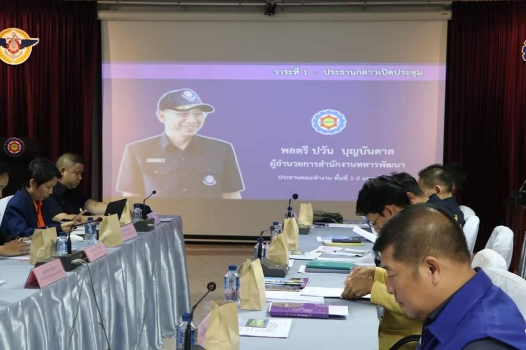 วันพุธที่ 21 สิงหาคม 2567 เวลา10.00 -12.00 น.ณ ห้องประชุมกองบังคับการกองการเกษตรและสหกรณ์ สำนักงานทหารพัฒนาหน่วยบัญชาการทหารพัฒนา กองบัญชาการกองทัพไทย (กกส.สทพ.นทพ.)อ.ไทรโยค จ.กาญจนบุรี พล.ต.ปวัน บุญบันดาล ผู้อำนวยการสำนักงานทหารพัฒนา หน่วยบัญชาการทหารพัฒนา ประธานกล่าวเปิดการประชุมคณะทำงานโครงการอนุรักษ์พันธุกรรมพืชอันเนื่องมาจากพระราชดำริฯ โดยพ.อ.อาร์ม สมรรคะบุตร ผู้อำนวยการกองการเกษตรและสหกรณ์ สำนักงานทหารพัฒนา หน่วยบัญชาการทหารพัฒนา กล่าวต้อนรับพร้อมชี้แจงรับรองผลการประชุม ครั้งที่1/2567ให้คณะทำงานโครงการอนุรักษ์พันธุกรรมพืชอันเนื่องมาจากพระราชดำริฯ หน่วยงานร่วมสนองพระราชดำริฯ แถลงผลการดำเนินงานในปีงบประมาณ พ.ศ 2567 และแผนการดำเนินงานร่วมสนองพระราชดำริในปีงบประมาณพ.ศ 2568 และงบประมาณพ.ศ 2569 กองการเกษตรและสหกรณ์ฯ แถลงผลการดำเนินงานในปีงบประมาณ พ.ศ.2567 แผนการดำเนินงานในปีงบประมาณ พ.ศ.2568 และแผนการดำเนินงานในปีงบประมาณพ.ศ. 2569
