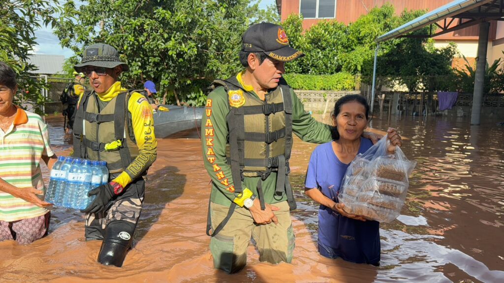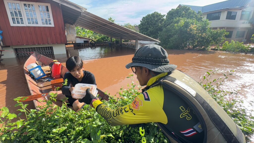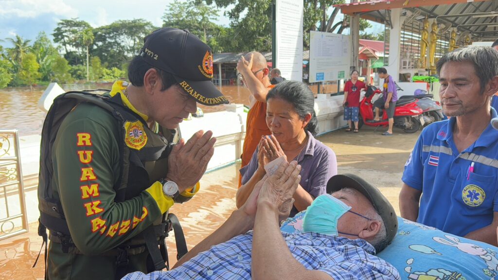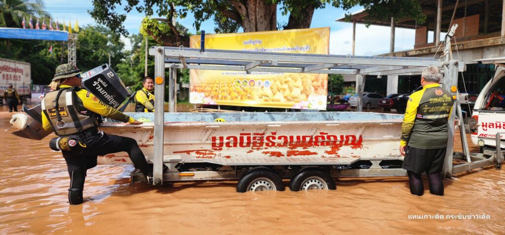 วันที่ 22 ส.ค.2567 เวลา 14.55 น. แผนการปฏิบัติชุดแรก นำโดย “พี่ไทด์” เอกพัน บรรลือฤทธิ์ ดารา 2 นำทีม จนท. – อาสาสมัครมูลนิธิฯ และ พี่น้องอาสาสมัครฯ มูลนิธิเครือข่าย ร่วม 30 นาย พร้อม เรือท้องแบน ,เรือกู้ภัย,รถกู้ภัยยกสูง,รถบรรทุก,อุปกรณ์ช่วยเหลือทางน้ำ เดินทางลงพื้นที่ ตำบลดู่ใต้ ในเขตอำเภอเมือง จังหวัดน่าน ซึ่งจุดนี้จะอยู่ติดริมน้ำ และยังเป็นพื้นที่รองรับน้ำจากท่าวังผาที่ไหลบ่าลงมา โดยแผนการปฏิบัติช่วยเหลือชาวบ้าน จะมีทั้งการอพยพคน ทรัพย์สินมีค่า สัตว์เลี้ยง ออกจากจุดเสี่ยงภัย พร้อมมอบสิ่งของบรรเทาทุกข์ช่วยเหลือในเบื้องต้น