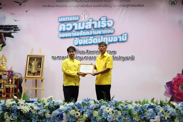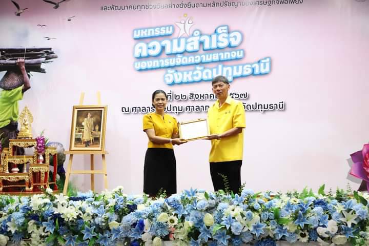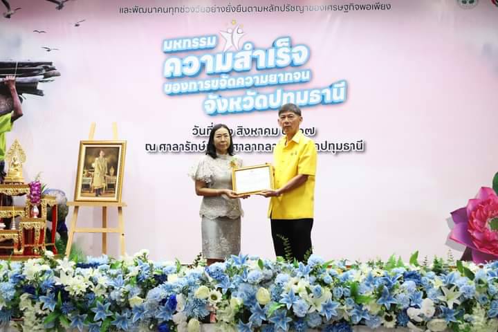 การจัดมหกรรมความสำเร็จการขจัดความยากจนและพัฒนาคนทุกช่วงวัยอย่างยั่งยืนตามหลักปรัชญาของเศรษฐกิจพอเพียง โดยสำนักงานพัฒนาชุมชนจังหวัดปทุมธานีในวันนี้ จึงเป็นการเผยแพร่ผลสำเร็จการดำเนินงาน พร้อมทั้งเป็นการเชิดชูเกียรติ กระตุ้นความสนใจ เสริมสร้างแรงบันดาลใจในการร่วมมือของทุกภาคส่วนในการขจัดความยากจนและพัฒนาคนทุกช่วงวัยอย่างยั่งยืนตามหลักปรัชญาของเศรษฐกิจพอเพียงในระดับพื้นที่ โดยภายในงาน มีการมอบประกาศเกียรติบัตรแก่ทีมพี่เลี้ยงดีเด่น 7 ราย และผู้สนับสนุนการขับเคลื่อนงานดีเด่น 7 ราย รวม 14 ราย การจัดเวทีเสวนาหัวข้อ ความสำเร็จของการขับเคลื่อนการขจัดความยากจนและพัฒนาคนทุกช่วงวัยอย่างยั่งยืนตามหลักปรัชญาของเศรษฐกิจพอเพียงจังหวัดปทุมธานี และจัดนิทรรศการแสดงผลงานความสำเร็จการขับเคลื่อนการขจัดความยากจนและพัฒนาคนทุกช่วงวัยอย่างยั่งยืนตามหลักปรัชญาของเศรษฐกิจพอเพียง จังหวัดปทุมธานี เพื่อถ่ายทอดประสบการณ์ แลกเปลี่ยนความรู้แก่ผู้เข้าร่วมกิจกรรม