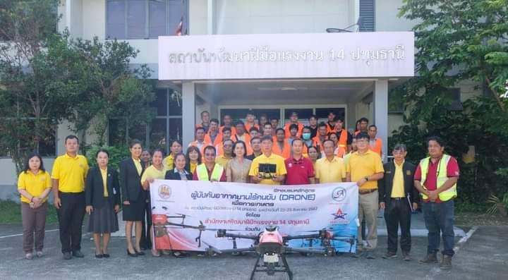 ทั้งนี้ สถาบันพัฒนาฝีมือแรงงาน 14 ปทุมธานี ร่วมกับ บริษัท แอโร กรุ๊ป (1992) จำกัด จัดโครงการพัฒนาทักษะอาชีพผู้บังคับอากาศยานไร้คนขับ (Drone) โดยกำหนดฝึกอบรมอาชีพเสริม หลักสูตรผู้บังคับหรือปล่อยอากาศยานซึ่งไม่มีนักบิน (Drone) เพื่อการเกษตร ระหว่างวันที่ 22 – 23 สิงหาคม 2567 มีผู้สนใจที่เป็นผู้ประกอบการธุรกิจเกษตรรุ่นใหม่ รวมทั้งแรงงานนอกระบบที่อยู่ในภาคการเกษตร ที่สนใจเป็นผู้บังคับอากาศยานไร้คนขับ จำนวน 27 คน เข้ารับการฝึกอบรม โดยจะได้รับทั้งความรู้พื้นฐาน ภาคทฤษฎี และฝึกปฏิบัติบินโดรน จนถึงความรู้ในการซ่อมแซมและบำรุงรักษาเบื้องต้น