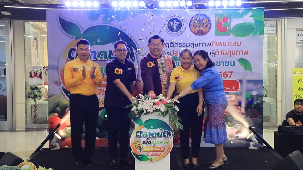 วันที่ 23 สิงหาคม 2567 เวลา 13.30 น. ที่ลานโปรโมรชั่น ชั้น 1 ห้างสรรพสินค้า บิ๊กซี ซุปเปอร์เซ็นเตอร์ สาขาลพบุรี อำเภอเมืองลพบุรี จังหวัดลพบุรี นายปรัชญา เปปะตัง รองผู้ว่าราชการจังหวัดลพบุรี เป็นประธานเปิดตลาดนัดเพื่อสุขภาพจังหวัดลพบุรี ภายใต้โครงการ ส่งเสริมการตลาด การบริโภคอาหารปลอดภัย โดยมี นายแพทย์ปิยะเดช วลีพิทักษ์เดช นายแพทย์สาธารณสุขจังหวัดลพบุรี นายรัฐพล ธุระพันธ์ นายอำเภอเมืองลพบุรี นางสวามินี อิสระทะ ประชาสัมพันธ์จังหวัดลพบุรี พร้อมด้วย ผู้บริหารห้างสรรพสินค้า บิ๊กซี ซุปเปอร์เซ็นเตอร์ ส่วนราชการ เจ้าหน้าที่ ตลอดจนประชาชนที่สนใจเข้าร่วมกิจกรรม