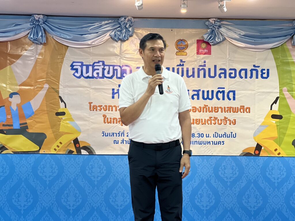 วันเสาร์ที่ 24 สิงหาคม 2567 เวลา 09.30 น. ผู้ว่ากรุงเทพมหานคร มอบหมายให้ นายชาตรี วัฒนเขจร รองปลัดกรุงเทพมหานคร เป็นประธานในพิธีเปิดโครงการสร้างการรับรู้การป้องกันยาเสพติดในกลุ่มผู้ขับขี่รถจักรยานยนต์รับจ้าง ภายใต้ชื่องาน “วินสีขาว สร้างพื้นที่ปลอดภัย ห่างไกลยาเสพติด” ณ สำนักงานเขตคลองเตย กรุงเทพมหานคร พร้อมด้วย แพทย์หญิงภาวิณี รุ่งทนต์กิจ รอง ผอ.สำนักอนามัย กรุงเทพมหานคร,นายสิทธิเดช ชูทอง ผชช.ปปส.กทม.,นางเบญญา อินทรวงศ์โชติ ผอ.ศป.ปส.เขตคลองเตย,นายแพทย์ธนัช พจน์พิสุทธิพงศ์ ผู้อำนวยการสำนักป้องกันและบำบัดการติดยาเสพติด กรุงเทพมหานคร,พญ.ปวีณาพร ก้องเกียรติศักดิ์ ผู้อำนวยการศูนย์บริการสาธารณสุข 10 ร่วมเป็นเกียรติในงาน