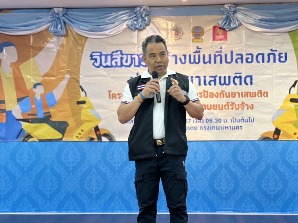 ด้าน นายสิทธิเดช ชูทอง ผชช.ปปส.กทม. กล่าวเสริมในตอนท้ายว่า ตามแผนปฏิบัติการเร่งรัดการดำเนินงานป้องกัน ปราบปราม และแก้ไขปัญหายาเสพติด ระยะเร่งด่วน 3 เดือน (1 มิ.ย.- 31 ส.ค.2567) กรุงเทพมหานคร โดย สำนักงานเขตคลองเตย ร่วมกับ ปปส.กทม. สน.ท่าเรือ และธนาคารออมสิน ได้ส่งเสริมการป้องกันและแก้ไขปัญหายาเสพติด และผลักดันให้เขตคลองเตยเป็นต้นแบบของการสร้างพื้นที่ปลอดภัยจากยาเสพติด โดยเฉพาะมอเตอร์ไซค์รับจ้าง “ดูแลวินให้เป็นสีขาว” เพื่อความปลอดภัยในการใช้บริการของผู้โดยสารและชุมชน ซึ่งเป็นอาชีพมีความเสี่ยงในการเข้าไปเกี่ยวข้องกับการใช้สารเสพติดและขนส่งยาเสพติดโดยอาจจะรู้หรือไม่รู้ก็ตาม แต่ในอีกแง่มุมหนึ่ง มอเตอร์ไซค์รับจ้างก็สามารถมีส่วนช่วยเป็นหูเป็นตาป้องกันและเฝ้าระวังยาเสพติดได้เช่นกัน