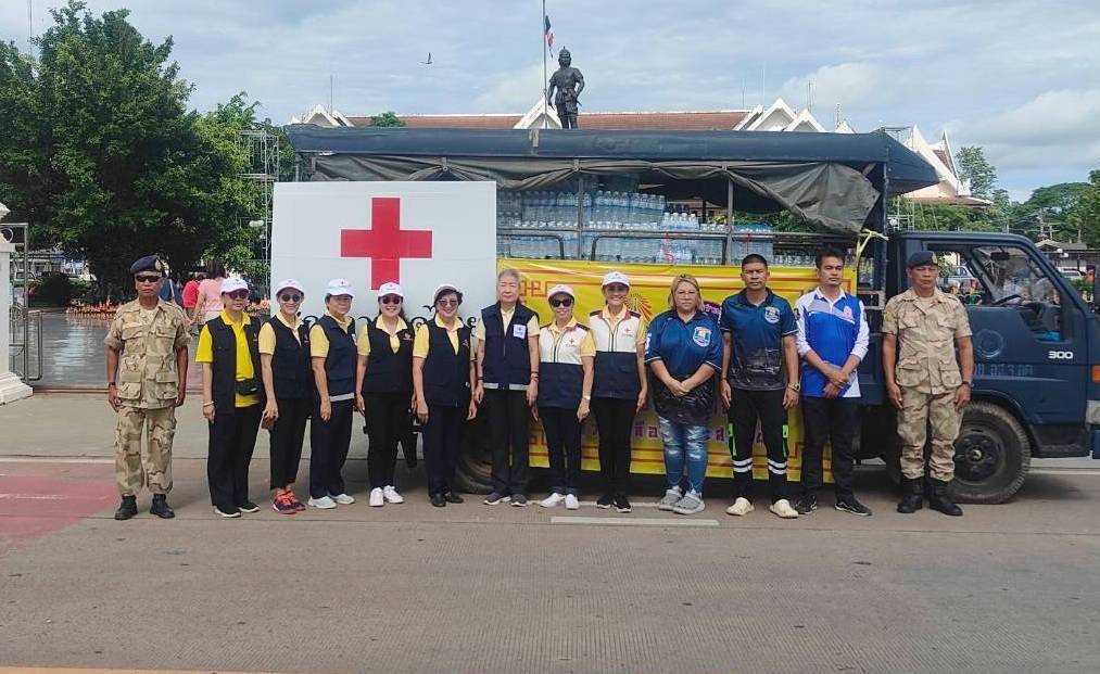 พร้อมกันนี้ เหล่ากาชาดจังหวัดอุตรดิตถ์ ได้เดินทางร่วมลงพื้นที่นำอาหารกล่อง และน้ำดื่มไปแจกจ่ายให้แก่ประชาชนผู้ประสบอุทกภัยในพื้นที่ตำบลเวียงทอง อำเภอสูงเม่น จังหวัดแพร่ อีกด้วย