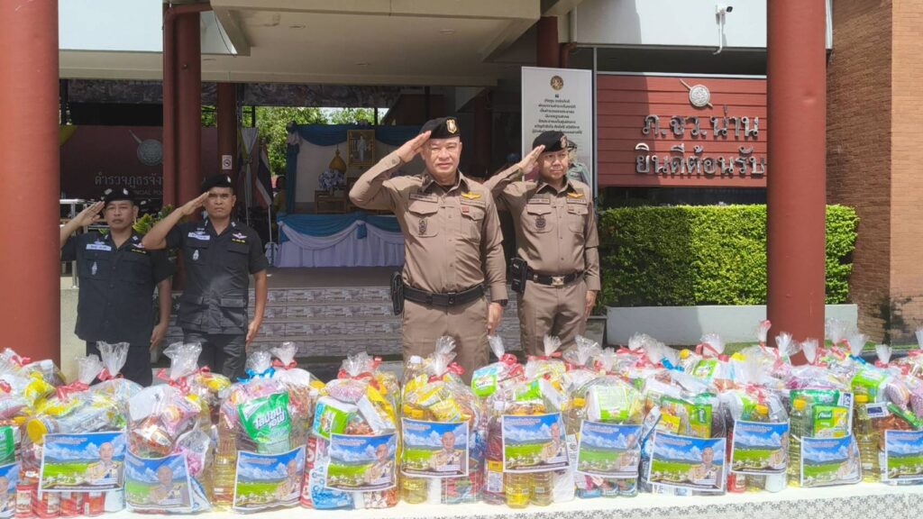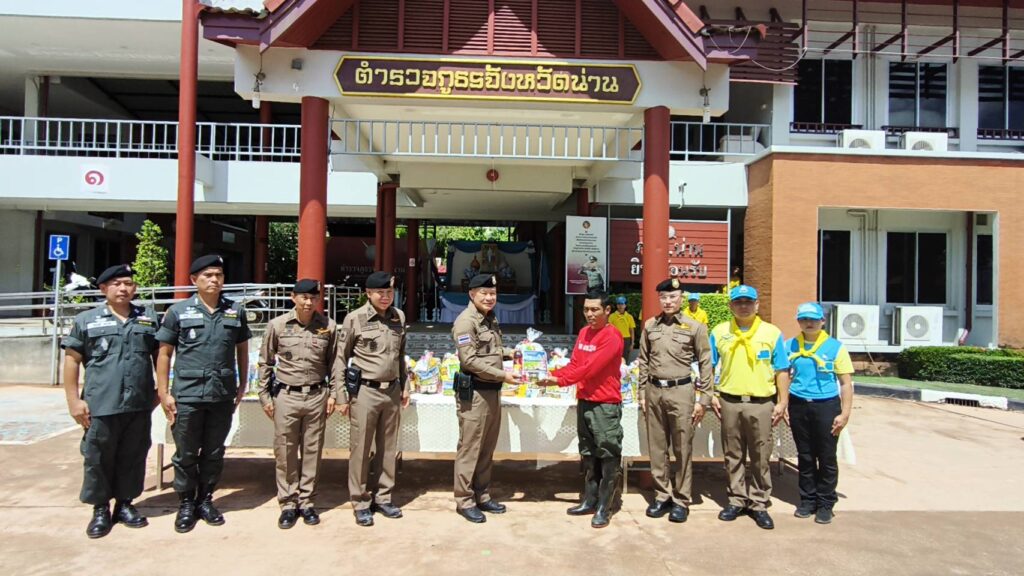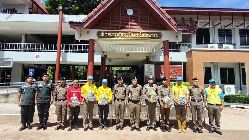 เมื่อวันที่ 24 สิงหาคม 2567 เวลา 10.00 น. พล.ต.อ.ต่อศักดิ์ สุขวิมล ผู้บัญชาการตำรวจแห่งชาติ (ผบ.ตร.) มอบหมายให้ พล.ต.ท.ประจวบ วงศ์สุข ผู้ช่วย ผบ.ตร.รรท.รอง ผบ.ตร. เดินทางไปตรวจเยี่ยม พร้อมมอบสิ่งของบำรุงขวัญและเงินช่วยเหลือให้กับข้าราชการตำรวจในพื้นที่ที่ประสบอุทกภัย ณ ลานอเนกประสงค์ ตำรวจภูธรจังหวัดน่าน (ภ.จว.น่าน) โดยมี พล.ต.ท.กฤตธาพล ยี่สาคร ผบช.ภ.5,พล.ต.ต.ดเรศ กัลยา ผบก.ภ.จว.น่าน ,พ.ต.อ.ภูวนาท ดวงดี รอง ผบก.ภ.จ.น่าน ให้การต้อนรับ มีเจ้าหน้าที่ตำรวจ ภ.จ.น่าน ,สภ.เมืองน่าน และ ร้อย ตชด.324 จำนวน 60 นาย รับการตรวจเยี่ยมและรับมอบสิ่งของบำรุงขวัญ