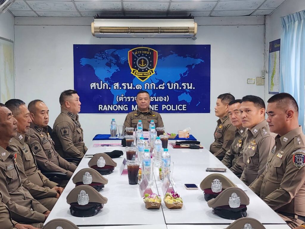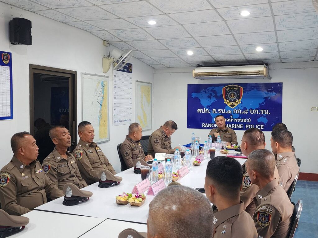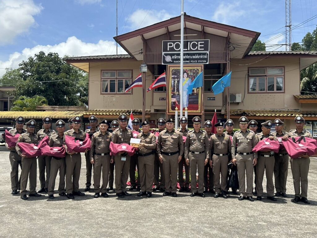 เมื่อวันที่ 21 ส.ค.2567 เวลา 10.00 น. พล.ต.ท.อัคราเดช พิมลศรี ผู้ช่วย ผบ.ตร.(ปป 4)(สส 2),พล.ต.ต.บัณฑิต ตุงคะเศรณี รอง ผบช.ภ.6,พ.ต.อ.ศราวุธ สวัสดิชัย รอง ผบก.ภ.จ.ปทุมธานี/หน.สง.ฯ,พ.ต.อ.เตชิต กุลกนิษฐรากร ผกก.(สอบสวน) กลุ่มงานสอบสวน บก.สส.ภ.2 และคณะ ได้ออกเยี่ยมบำรุงขวัญหน่วยข้าราชการตำรวจในสังกัด ส.รน.1 กก.8 บก.รน.จ.ระนอง โดยมี พ.ต.อ.สุทธิ นิติอัครพงศ์ รอง ผบก.ภ.จ.ระนอง,พ.ต.อ.สมบัติ ชุมพล ผกก.สภ.ปากน้ำระนอง,พ.ต.ท.ปิยะณัฐ ปะโสทะกัง สว.ส.รน.1 กก.8 บก.รน. พร้อมด้วย ข้าราชการตำรวจในสังกัด ส.รน.1 กก.8 บก.รน.จ.ระนอง ให้การต้อนรับ ได้รับฟังบรรยายสรุป รับทราบสภาพปัญหา อุปสรรค ข้อขัดข้องในพื้นที่ และได้แนะนำแนวทางการปฏิบัติราชการให้แก่ข้าราชการตำรวจในสังกัด ส.รน.1 กก.8 บก.รน.จ.ระนอง จากนั้นได้มอบชุดสิ่งของบำรุงขวัญ ของ ตร.,มอบเงินและเลี้ยงอาหารกลางวันให้แก่ข้าราชการตำรวจ ส.รน.1 กก.8 บก.รน. จ.ระนอง เพื่อเป็นขวัญกำลังใจในการปฏิบัติหน้าที่