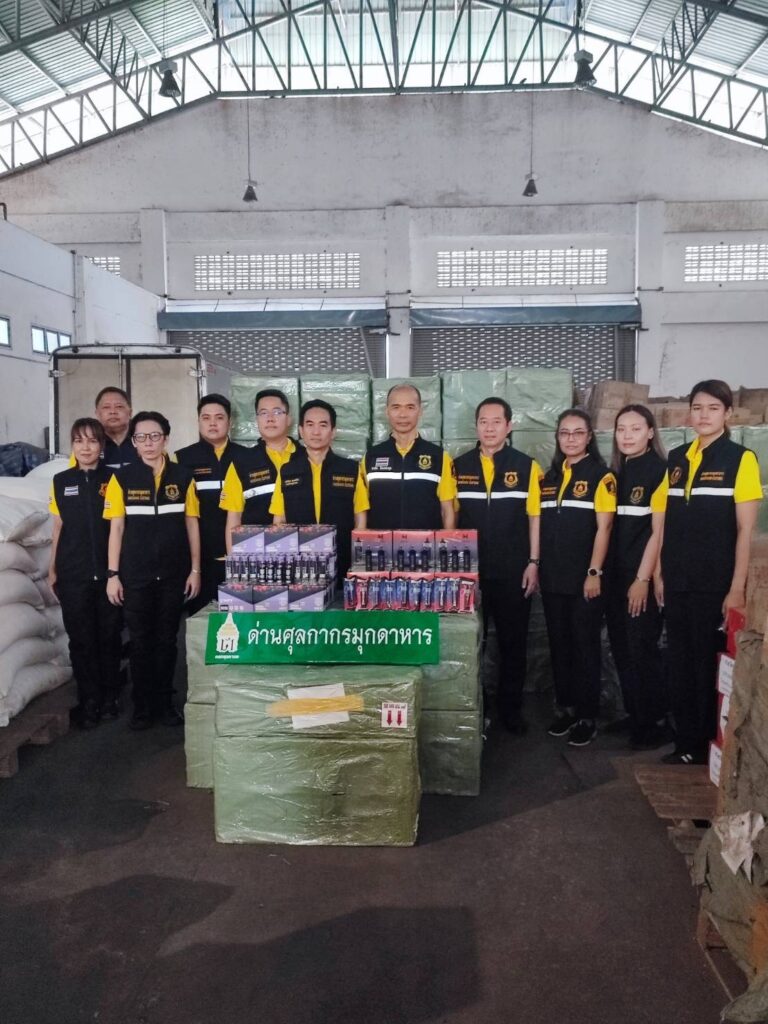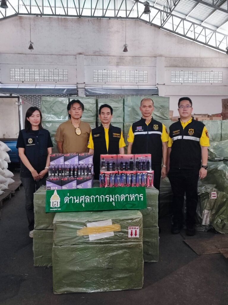 วันนี้ (26 สิงหาคม 2567) นายพันธ์ทอง ลอยกุลนันท์ ที่ปรึกษาด้านการพัฒนาและบริหารการจัดเก็บภาษี ในฐานะโฆษกกรมศุลกากร เปิดเผยว่า ตามนโยบายของรัฐบาลให้ความสำคัญกับการป้องกันและปราบปรามการลักลอบนำเข้าบุหรี่และบุหรี่ไฟฟ้าอย่างเข้มงวด เนื่องจากในสถานการณ์ปัจจุบันพบว่าเด็กและเยาวชน รวมถึงประชาชนกำลังนิยมใช้บุหรี่ไฟฟ้าเป็นอย่างมาก ซึ่งผู้ลักลอบผลิตหรือจำหน่ายมีการดัดแปลงรูปลักษณ์ภายนอกของบุหรี่ไฟฟ้าให้มีความน่าสนใจหรือผสมยาเสพติดประเภทอื่นเข้าไปในน้ำยาบุหรี่ไฟฟ้าอีกด้วย ทำให้เกิดอันตรายต่อสุขภาพของเด็ก เยาวชน และประชาชนเป็นอย่างมาก เพื่อเป็นการป้องกันสุขภาพของประชาชนที่เกิดจากบุหรี่ บุหรี่ไฟฟ้า กรมศุลกากร โดยนายธีรัชย์ อัตนวานิช อธิบดีกรมศุลกากร ได้ขานรับนโยบายและกำชับให้เจ้าหน้าที่ศุลกากรเข้มงวดกวดขันในการป้องกันและปราบปรามผู้กระทำความผิด ด้วยการจับกุมผู้ลักลอบนำเข้าและผู้จำหน่ายบุหรี่ไฟฟ้าและอุปกรณ์ส่วนควบอย่างจริงจัง เด็ดขาด และต่อเนื่อง รวมถึงบังคับใช้กฎหมายที่เกี่ยวข้องอย่างเคร่งครัด ตลอดจนบูรณาการกับหน่วยงานที่เกี่ยวข้อง อาทิ กระทรวงพาณิชย์ กระทรวงมหาดไทย สำนักงานคณะกรรมการคุ้มครองผู้บริโภค สำนักงานตำรวจแห่งชาติ เพื่อสืบสวนหาข่าวลักลอบการนำเข้า