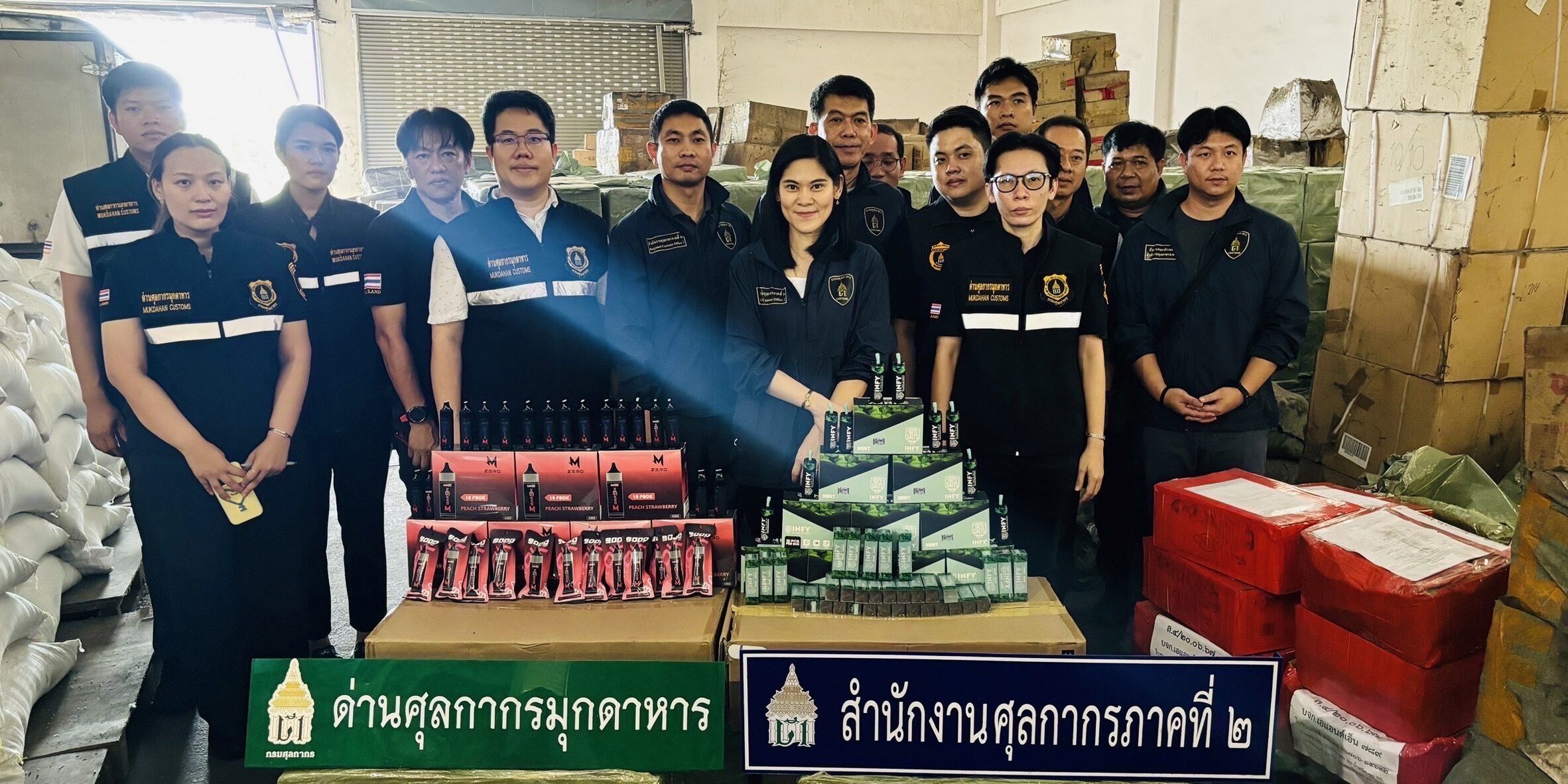 เมื่อวันที่ 23 สิงหาคม 2567 ที่ผ่านมา กรมศุลกากร โดย ด่านศุลกากรมุกดาหาร ร่วมกับ สำนักงานศุลกากรภาคที่ 2 และ กองสืบสวนและปราบปราม ร่วมกันตรวจสอบตู้สินค้าที่มีต้นทางจากสาธารณรัฐประชาชนจีน อย่างเข้มงวดตามนโยบายอธิบดี ทั้งนี้ ขณะปฏิบัติหน้าที่พบตู้สินค้าที่มีการบรรทุกสินค้าเกินกว่าที่สำแดงในใบขนสินค้าขาเข้า จึงทำการเข้าตรวจค้นสินค้า ผลการตรวจค้น พบสินค้าที่ไม่ได้สำแดงตามใบขนสินค้าและเป็นสินค้าต้องห้ามนำเข้า คือ บุหรี่ไฟฟ้าชนิดใช้แล้วทิ้ง จำนวน 128,130 ชิ้น มูลค่ากว่า 20 ล้านบาท