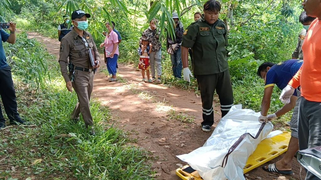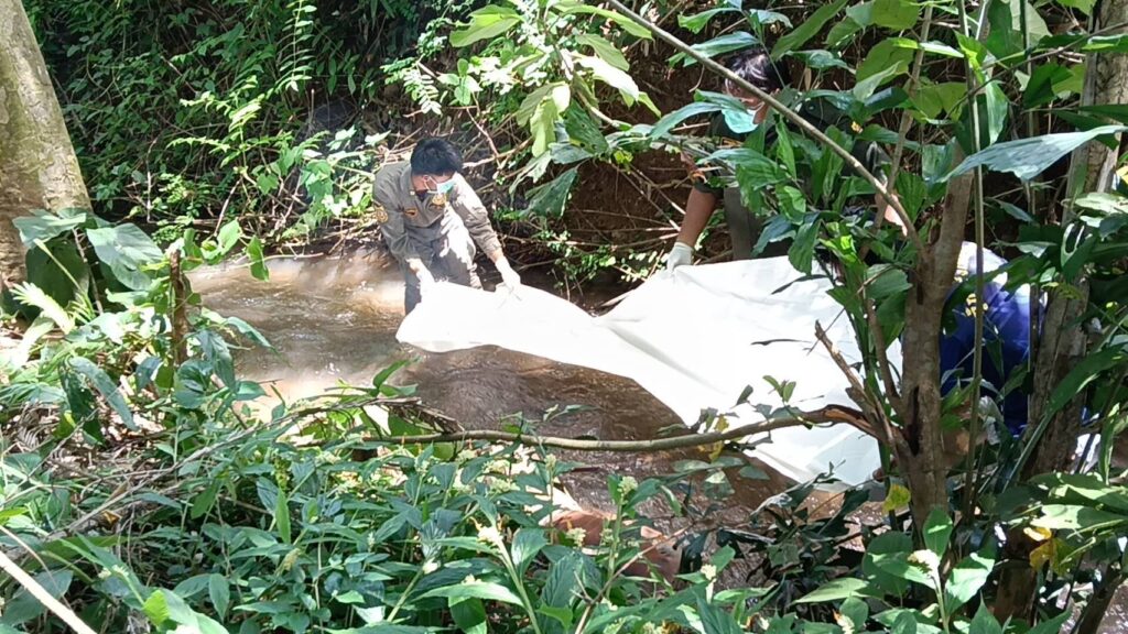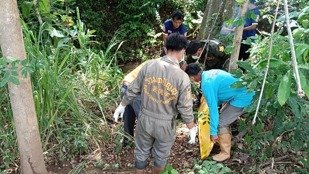 จากการสอบสวนนางนาง กันยาประสิทธิ์ อายุ60ปี ภรรยาของผู้เสียชีวิตเปิดเผยว่าปกติสามีของตนจะมานอนเฝ้าควายที่เลี้ยงไว้ในสวนมะขามใกล้กับจุดเกิดเหตุ 3-4 วันก็จะกลับบ้านที ล่าสุดมาสามีออกจากบ้านมาเมื่อวันที่ 12 สิงหาคม 2567 กระทั่งหลายวันผ่านไปสามียังไม่กลับมาบ้านแต่ก็ไม่ได้เฉลียวใจ กระทั่งวันที่ 21 ส.ค.2567 เพื่อนบ้านที่มีสวนมะขามหวานใกลๆกันจะผ่านไปแถวนั้นตนจึงได้ฝากข้าวสารและวัตถุดิบในการทำอาหารไปให้สามี และทราบภายหลังว่าเพื่อนบ้านไปถึงเวลาประมาณ 2 ทุ่มไม่มีใครอยู่ในกระท่อม จึงได้เรียกหาแต่ไม่มีใครตอบ คาดว่าสามีอาจจะออกไปดูควายจึงได้ห้อยของฝากไว้ที่ข้างกระท่อม จนกระทั่งเมื่อเช้าหลานชายงอแงอยากจะไปหาตา ตนจึงให้ลูกชายพาหลานไปหาตาแต่ก็ไม่พบและพบว่าวัตถุดิบที่ฝากเพื่อนบ้านไปนั้นยังห้อยอยู่ข้างกระท่อมและเริ่มเน่าแล้ว คิดว่าต้องเกิดเรื่องร้ายกับสามีแน่จึงได้ไปตามเพื่อนบ้านและแจ้งอาสากู้ภัยให้มาช่วยกันค้นหากระทั่งมาพบถุงใส่หน่อไม้ตกอยู่ข้างลำคลอง และพบศพของสามีนอนเสียชีวิตอยู่ในคลองห่างจากจุดที่พบถุงหน่อไม้ประมาณ 100 เมตร
