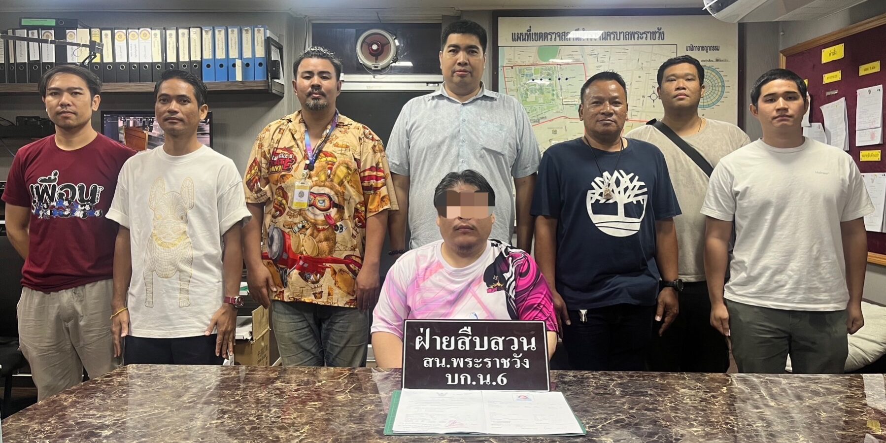 เมื่อเวลา 10.30 น. วันนี้ 26 ส.ค. ภายใต้การอำนวยการของ พ.ต.อ.ภาวัต วรรธสุภัทร ผกก.สน.พระราชวัง ได้สั่งการให้ พ.ต.ท.ไพศาล เดชกัลยา รอง ผกก.สส.สน.พระราชวัง พ.ต.ท.พลาวัสถ์ คนกล้า สว.สส.สน.พระราชวัง พร้อมกำลังลังเจ้าหน้าที่ฝ่ายสืบสวน สน.พระราชวัง ร่วมกันจับกุมตัว นาย พิศาล อายุ 40 ปี ชาว จ.นนทบุรี ผู้ต้องหาตามหมายจับศาลอาญา ที่ 3467/2567 ลงวันที่ 25 กรกฎาคม 2567 ข้อหา/ฐานความผิด ลักทรัพย์ที่เป็นของนายจ้างหรืออยู่ในความครอบครองของนายจ้าง โดยจับกุมได้ที่บ้านพักใน ต.เสาธงหิน อ.บางใหญ่ จ.นนทบุรี เมื่อเวลา 17.00 น. ( 24 ส.ค. ) ที่ผ่านมา