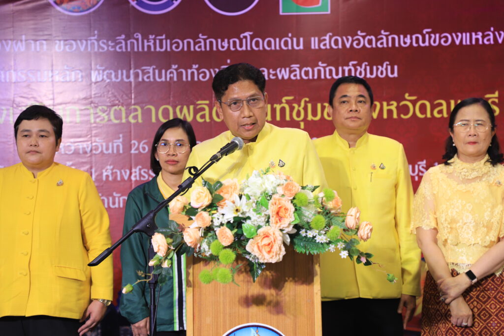 นางบัณฑิตา หมื่นพรม พัฒนาการจังหวัดลพบุรี พร้อมด้วยหัวหน้าส่วนราชการ ข้าราชการ เจ้าหน้าที่ พัฒนาชุมชนคณะกรรมการเครือข่ายกลุ่มอาชีพ และผู้ผลิต ผู้ประกอบการหนึ่งตำบล หนึ่งผลิตภัณฑ์ จังหวัดลพบุรี เข้าร่วมพิธีเปิดในครั้งนี้