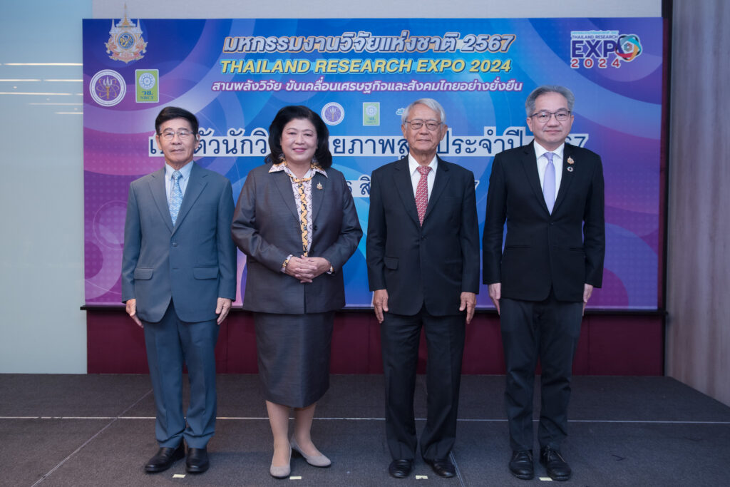 เมื่อวันที่ 26 สิงหาคม 2567 ณ ห้อง Lotus Suite 3 – 4 ชั้น 22 บางกอกคอนเวนชันเซ็นเตอร์ เซ็นทรัลเวิลด์ กรุงเทพฯ กระทรวงการอุดมศึกษา วิทยาศาสตร์ วิจัยและนวัตกรรม (อว.) โดยสำนักงานการวิจัยแห่งชาติ (วช.) และ สำนักงานพัฒนาวิทยาศาสตร์และเทคโนโลยีแห่งชาติ (สวทช.) ร่วมจัด “งานเปิดตัวนักวิจัยศักยภาพสูง ประจำปี 2567” โดย ดร.วิภารัตน์ ดีอ่อง ผู้อำนวยการสำนักงานการวิจัยแห่งชาติ (ผอ.วช.) ศาสตราจารย์ ดร.ชูกิจ ลิมปิจำนงค์ ผู้อำนวยการสำนักงานพัฒนาวิทยาศาสตร์และเทคโนโลยีแห่งชาติ (ผอ.สวทช.) ศาสตราจารย์ ดร.ยงยุทธ ยุทธวงศ์ และ ศาสตราจารย์กิตติคุณ นพ.สุทธิพร จิตต์มิตรภาพ ร่วมแถลงข่าวเปิดตัว 3 นักวิจัยศักยภาพสูง จากการสนับสนุนจากทุนส่งเสริมกลุ่มวิจัยศักยภาพสูง ประจำปี 2567 และโครงการวิจัยที่กำลังจะดำเนินการ รวมถึงผลลัพธ์ที่คาดว่าจะเกิดขึ้นในอีก 3 ปีข้างหน้า โดยมีคณะกรรมการทุนส่งเสริมกลุ่มวิจัยศักยภาพสูง ผู้บริหาร วช. ผู้บริหาร (สวทช.) ผู้บริหารต้นสังกัดนักวิจัย นักวิจัย ผู้ทรงคุณวุฒิ และแขกผู้มีเกียรติ เข้าร่วมงาน