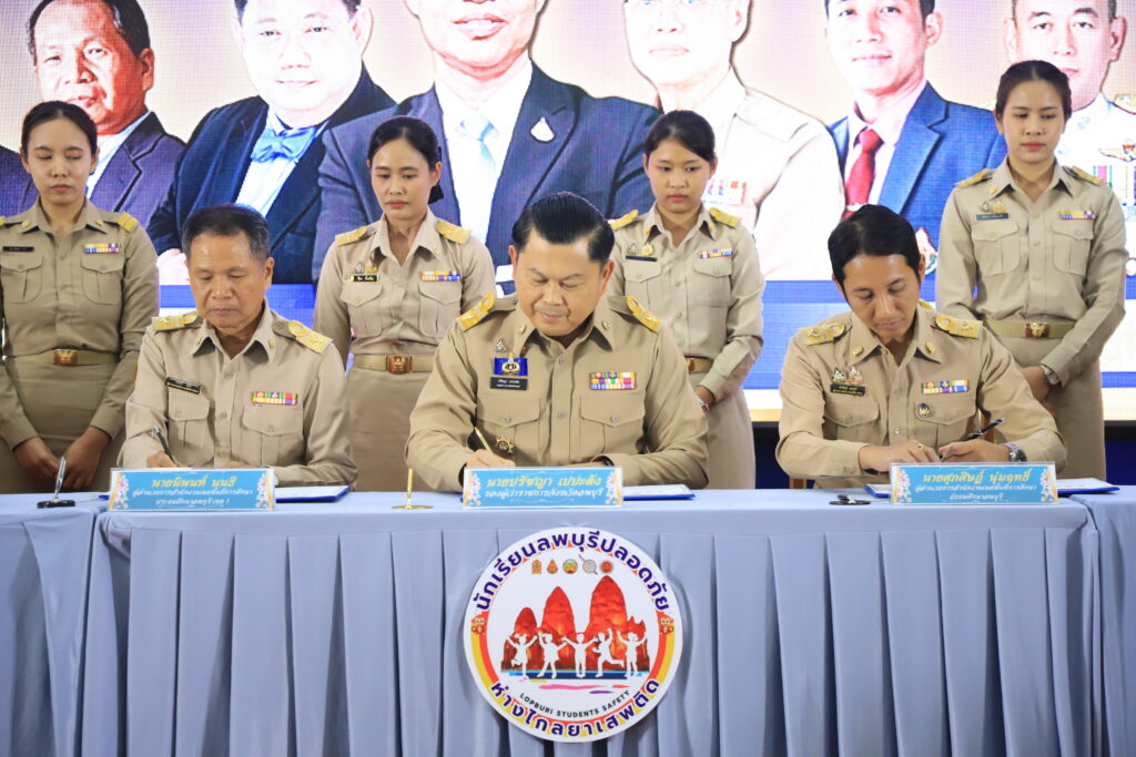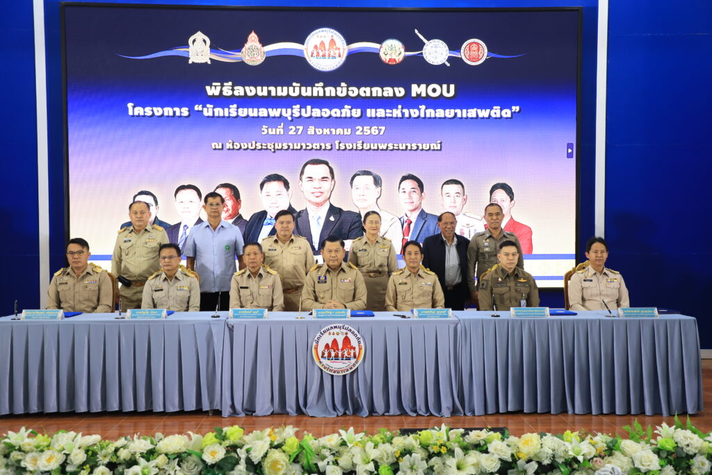 สำหรับกิจกรรมในวันนี้ เป็นการเตรียมการยกระดับการเฝ้าระวังเหตุเป็นพิเศษ ที่มีทุกภาคส่วนที่ทำงานด้านความปลอดภัยมาร่วมกัน มีพิธีลงนามบันทึกข้อตกลงความร่วมมือ (MOU) ระหว่างภาคีเครือข่ายจังหวัดลพบุรี จำนวน 7 หน่วยงานได้แก่ จังหวัดลพบุรี สำนักงานเขตพื้นที่การศึกษาประถมศึกษาลพบุรีเขต 1 สำนักงานเขตพื้นที่การศึกษาประถมศึกษาลพบุรี เขต 2 สำนักงานศึกษาธิการจังหวัดลพบุรี ตำรวจภูธรจังหวัดลพบุรี สำนักงานอาชีวศึกษาจังหวัดลพบุรี และสำนักงานเขตพื้นที่การศึกษามัธยมศึกษาลพบุรี ผู้อำนวยการสถานศึกษาในสังกัดสำนักงานเขตพื้นที่การศึกษาประถมศึกษาลพบุรี เขต 1 สำนักงานเขตพื้นที่การศึกษาประถมศึกษาลพบุรี เขต 2 และสำนักงานเขตพื้นที่การศึกษามัธยมศึกษาลพบุรี สำนักงานศึกษาธิการจังหวัดลพบุรี สำนักงานอาชีวศึกษาจังหวัดลพบุรี และตำรวจภูธรจังหวัดลพบุรีทุกสถานี ในการจัดทำแผนปฏิบัติการ นักเรียนลพบุรีปลอดภัยห่างไกลยาเสพติด