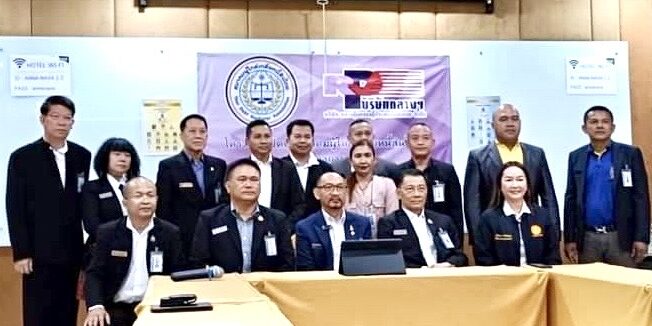 นายภวัต อุดมสวัสดิ์ นายกสมาคมผู้ไกล่เกลี่ยหนี้สินไทย,พล.ต.ต.ดร.ชยุต มารยาทตร์ ที่ปรึกษาและผู้ทรงคุณวุฒิด้านการไกล่เกลี่ย กรมคุ้มครองสิทธิและเสรีภาพกระทรวงยุติธรรม,นายสมหมาย เอี่ยมสะอาด ประธานที่ปรึกษากิตติมศักดิ์ พร้อมคณะที่ปรึกษาและคณะกรรมการสมาคมฯ ได้ร่วมร่วมกันแถลงข่าว การเตรียมตัวอย่างเป็นทางการของสมาคมผู้ไกล่เกลี่ยหนี้สินไทย ณ โรงแรมอัณณา-นาวา อ.ปากเกร็ด จ.นนทบุรี
