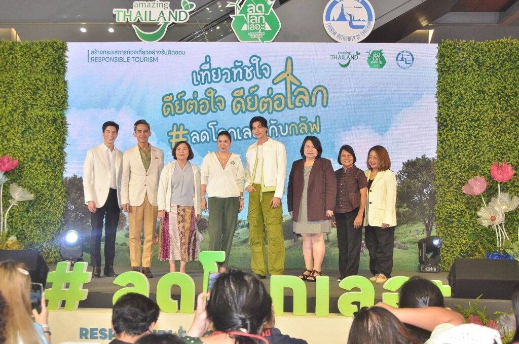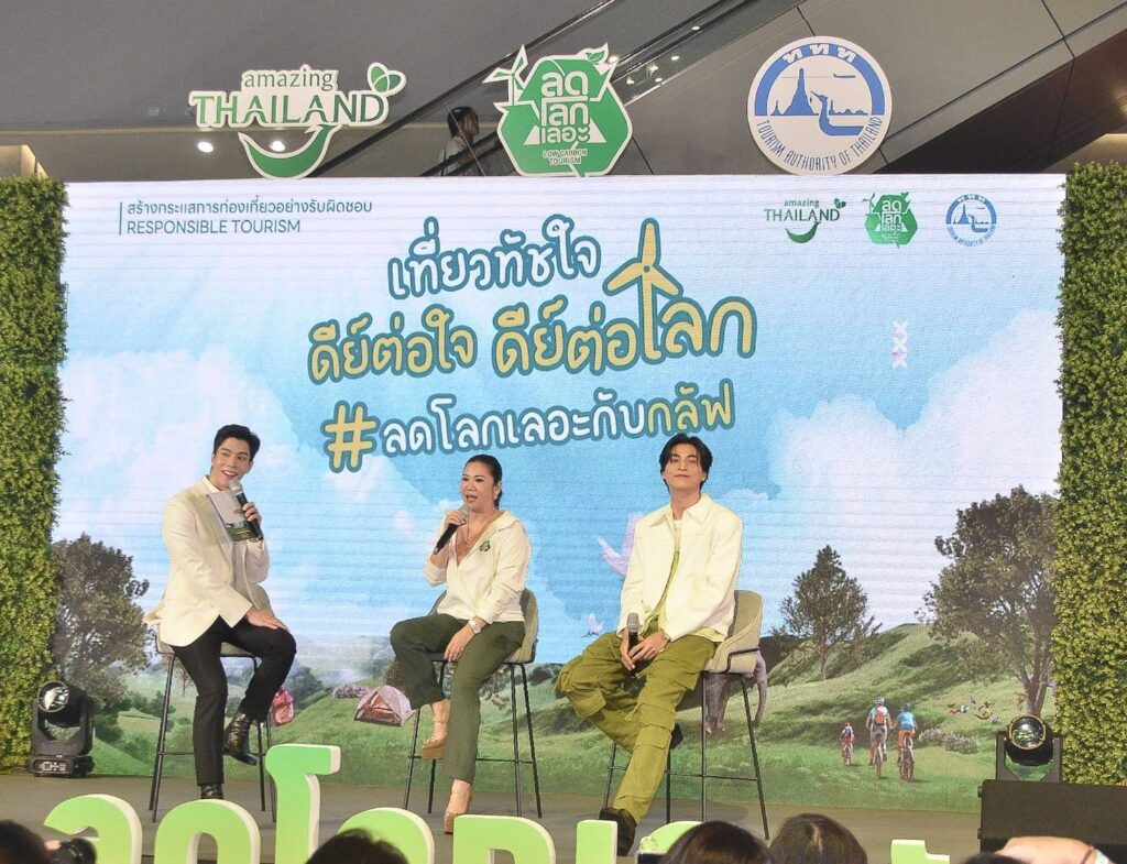 วันที่ 28 สิงหาคม 2567 : การท่องเที่ยวแห่งประเทศไทย (ททท.) แถลงข่าวเปิดตัวโครงการสร้างกระแสการท่องเที่ยวอย่างรับผิดชอบ “ลดโลกเลอะกับกลัฟ เที่ยวทัชใจ ดีต่อใจ ดีต่อโลก” โดยดึง กลัฟ คณาวุฒิ ศิลปินชื่อดังร่วมเป็นพรีเซนเตอร์โครงการ ชวนคนรุ่นใหม่ออกเดินทางท่องเที่ยวอย่างใส่ใจสิ่งแวดล้อม พร้อม คืนสิ่งดีๆ ให้กับธรรมชาติ ร่วมเปิดตัวโครงการโดย นางสาวฐาปนีย์ เกียรติไพบูลย์ ผู้ว่าการ ททท. และ กลัฟ คณาวุฒิ ไตรพิพัฒนพงษ์ ณ ศูนย์การค้าสามย่านมิตรทาวน์
