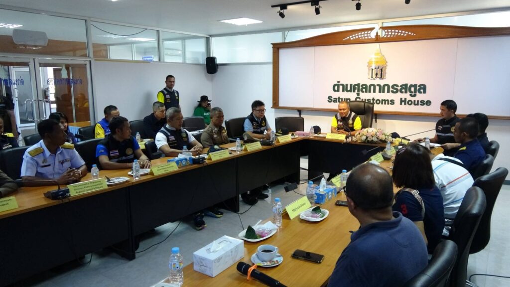 เมื่อวันที่ 30 สิงหาคม 2567 ที่ผ่านมา ที่ด่านศุลกากรตำมะลัง จังหวัดสตูล มีพิธีส่งมอบเรือของกลางคืนให้แก่ทางการมาเลเซีย โดยนายศักระ กปิลกาญจน์ ผู้ว่าราชการจังหวัด ผอ.ศรชล.ได้มอบหมายให้ น.อ.แสนย์ไท บัวเนียม รองผู้อำนวยการศูนย์อำนวยการรักษาผลประโยชน์ของชาติทางทะเลจังหวัดสตูล เป็นประธานในพิธี
