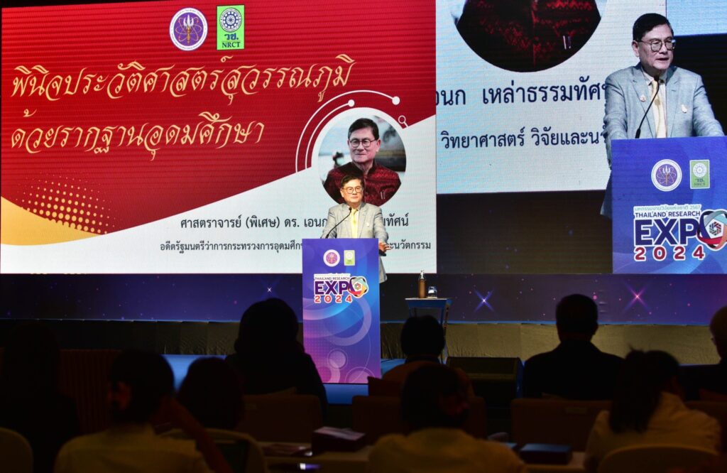 เมื่อวันที่ 29 สิงหาคม 2567 สำนักงานการวิจัยแห่งชาติ (วช.) กระทรวงการอุดมศึกษา วิทยาศาสตร์ วิจัยและนวัตกรรม จัดการประชุม หัวข้อเรื่อง “ขุมทรัพย์จากอดีต: ประวัติศาสตร์สยามรัถยา” โดยได้รับเกียรติจาก โดย ศาสตราจารย์ (พิเศษ) ดร.เอนก เหล่าธรรมทัศน์ อดีตรัฐมนตรีว่าการกระทรวงการอุดมศึกษา วิทยาศาสตร์ วิจัยและนวัตกรรม ปาฐกถาพิเศษ เรื่อง “พินิจประวัติศาสตร์สุวรรณภูมิด้วยรากฐานอุดมศึกษา” ซึ่งมี ดร.วิภารัตน์ ดีอ่อง ผู้อำนวยการสำนักงานการวิจัยแห่งชาติ ศาสตราจารย์ ดร.นพ.สิริฤกษ์ ทรงศิวิไล ประธานกรรมการส่งเสริมวิทยาศาสตร์ วิจัยและนวัตกรรม และรองศาสตราจารย์ ดร.ปรีดี พิศภูมิวิถี ผู้เชี่ยวชาญด้านประวัติศาสตร์ คณะศิลปศาสตร์ มหาวิทยาลัยมหิดล ให้การต้อนรับ ณ ห้องประชุม World Ballroom ชั้น 23 โรงแรมเซ็นทาราแกรนด์ และบางกอกคอนเวนชัน เซ็นเตอร์ เซ็นทรัลเวิลด์