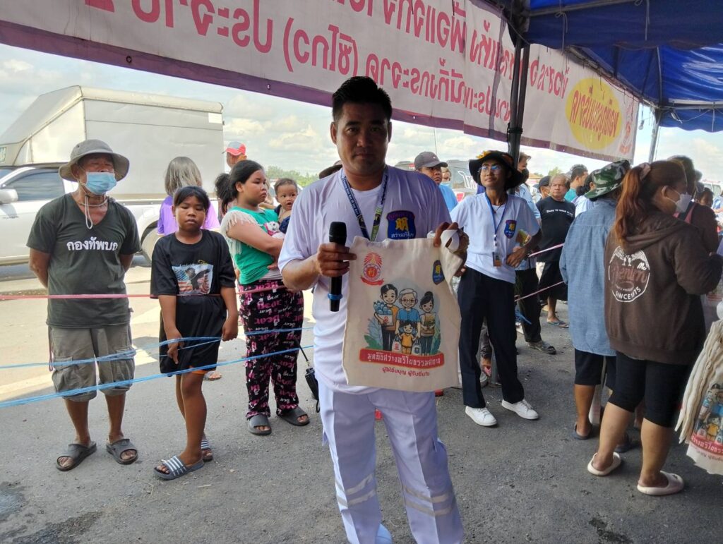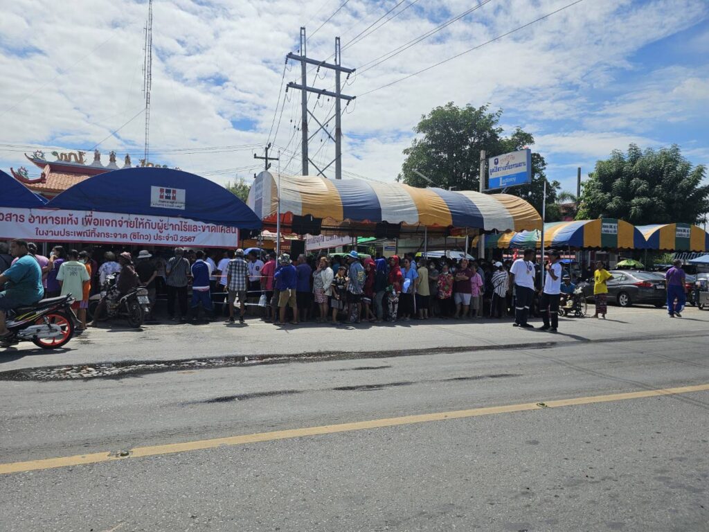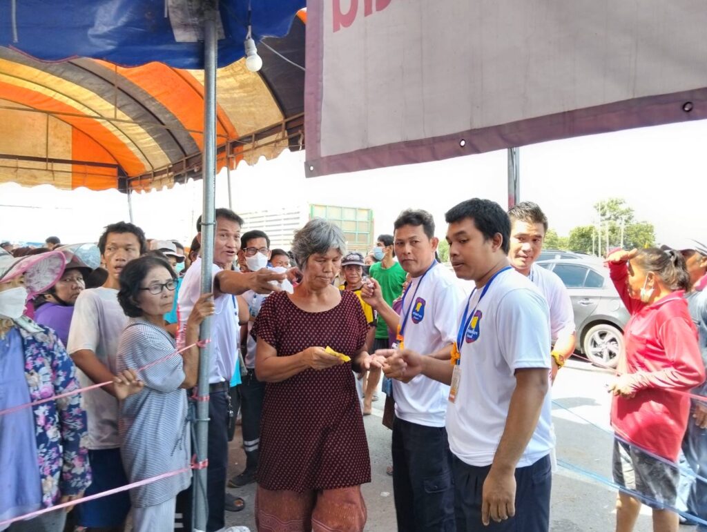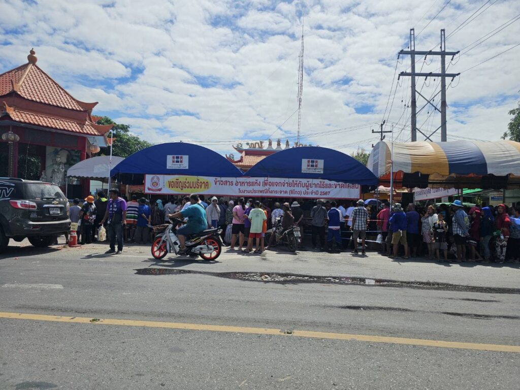 ได้ต่อแถวรับข้าวสารอาหารแห้ง เป็นจำนวนคับคั่ง