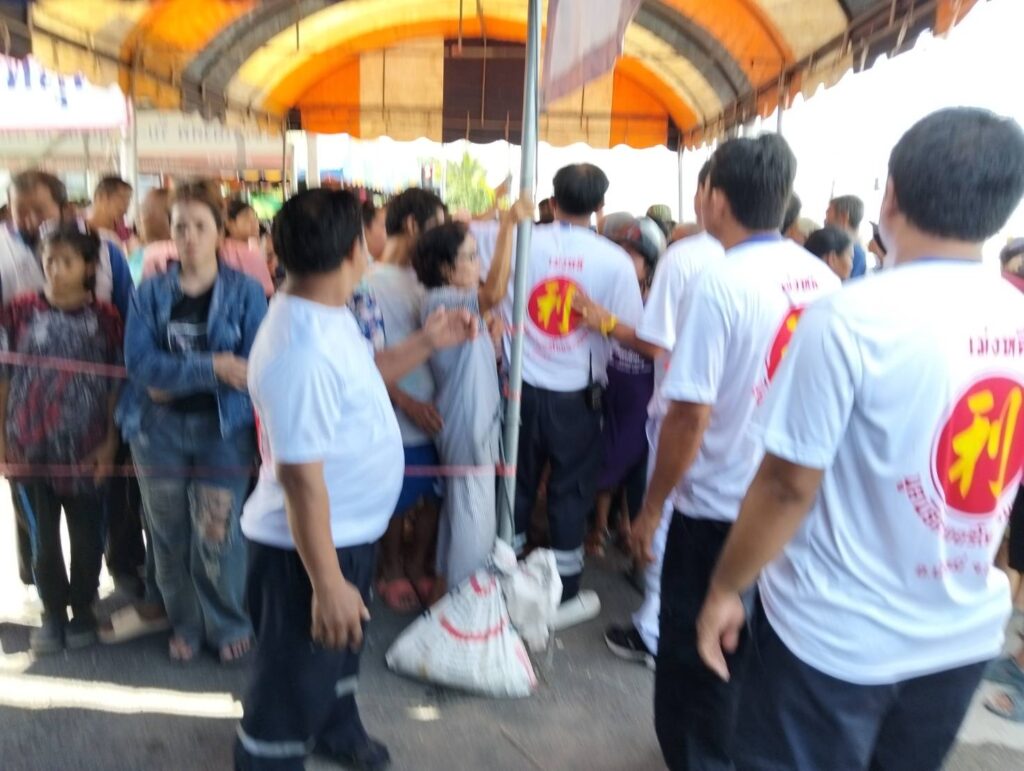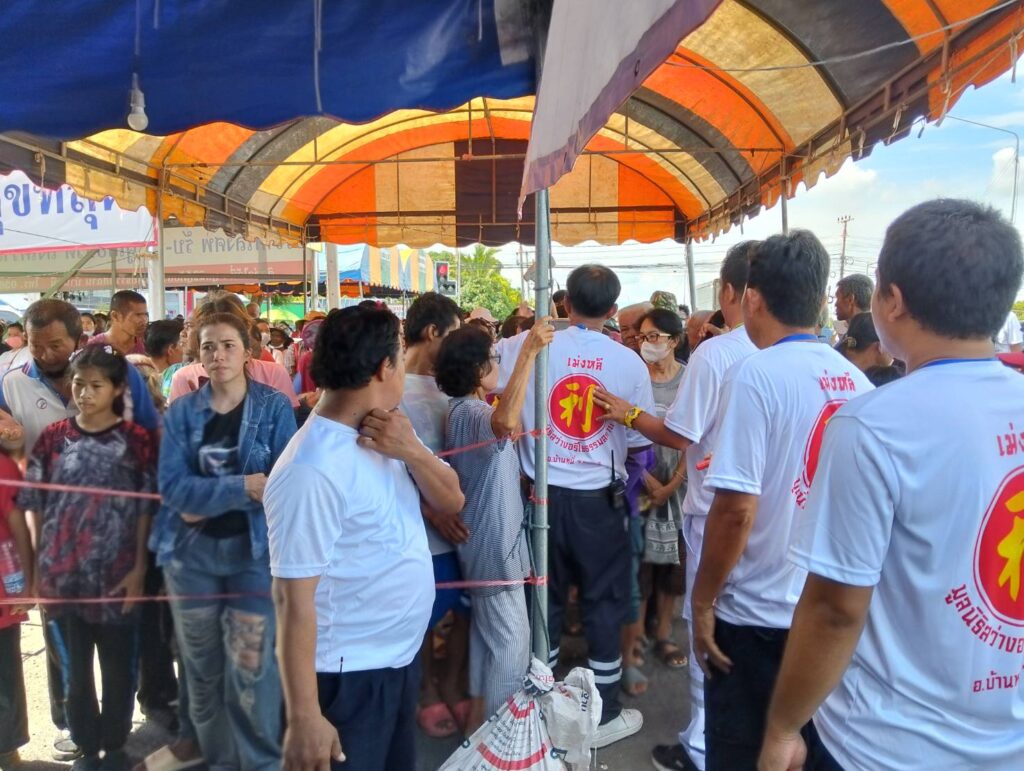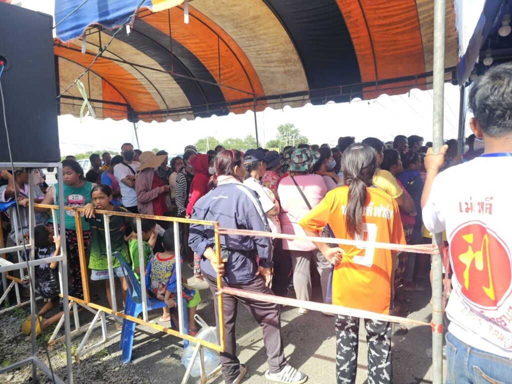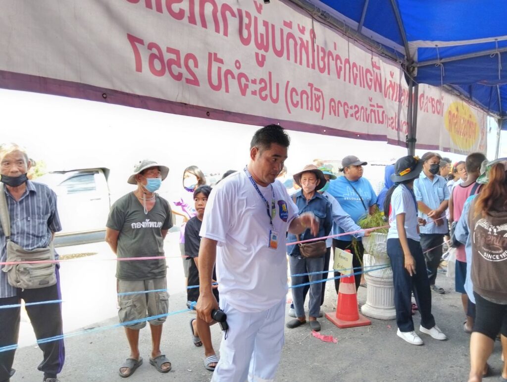 ได้ต่อแถวรับข้าวสารอาหารแห้ง เป็นจำนวนคับคั่ง