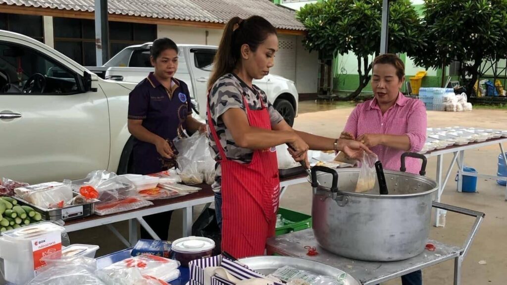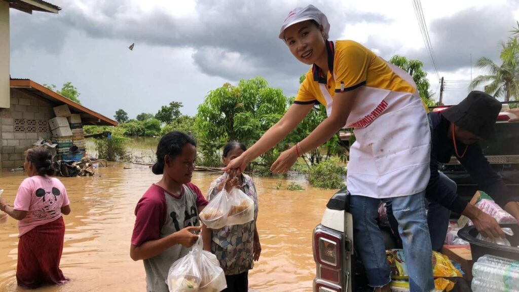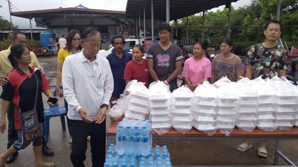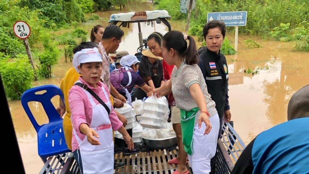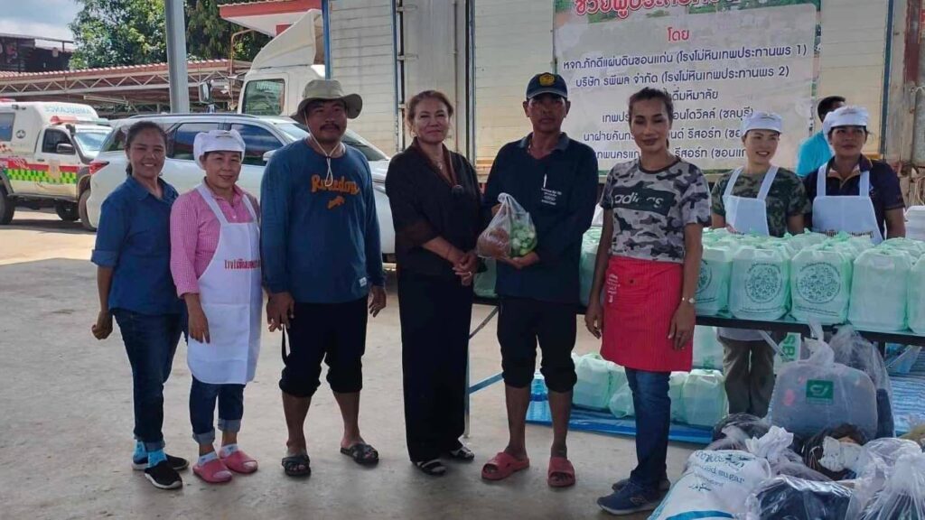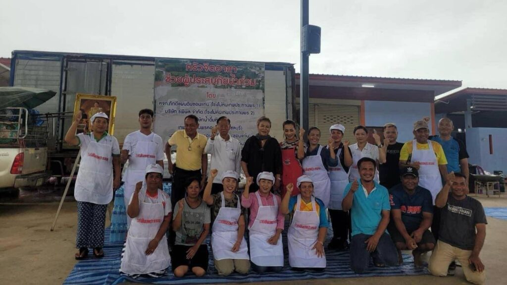 โดยได้จัดทำอาหาร ปรุงสดบรรจุกล่องส่งให้พี่น้องประชาชน ที่ถูกน้ำท่วม ในพื้นที่วิกฤติทุกวัน วันละ 500-1,000 กล่อง โดยการลำเลียงใส่เรือส่งมอบให้ถึงมือผู้ประสบภัย นอกจากนี้ ทางด้านบริษัท รพีพล จำกัด (โรงโม่เทพประทานพร 2) ยังได้จัดเตรียมอาหารแห้ง และน้ำดื่ม แจกให้อีกจำนวนอีกหนึ่ง