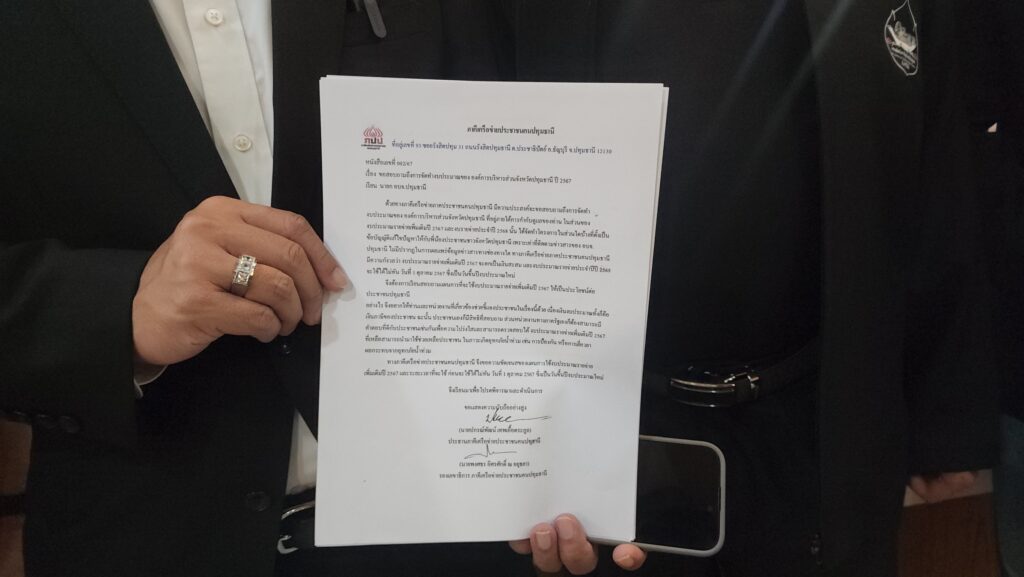 วันที่ 3 กันยายน 2567 ที่องค์การบริหารส่วนจังหวัดปทุมธานี ตำบลบ้านฉาง อำเภอเมืองปทุมธานี จังหวัดปทุมธานี นายปกรณ์พัฒน์ เทพเอื้อตระกูล ประธานภาคีเครือข่ายประชาชนคนปทุธานี พร้อมตัวแทนภาคประชาชน ได้ยื่นหนังสือ ขอสอบถามถึงการจัดทำงบประมาณของ องค์การบริหารส่วนจังหวัดปทุมธานี ปี 2567