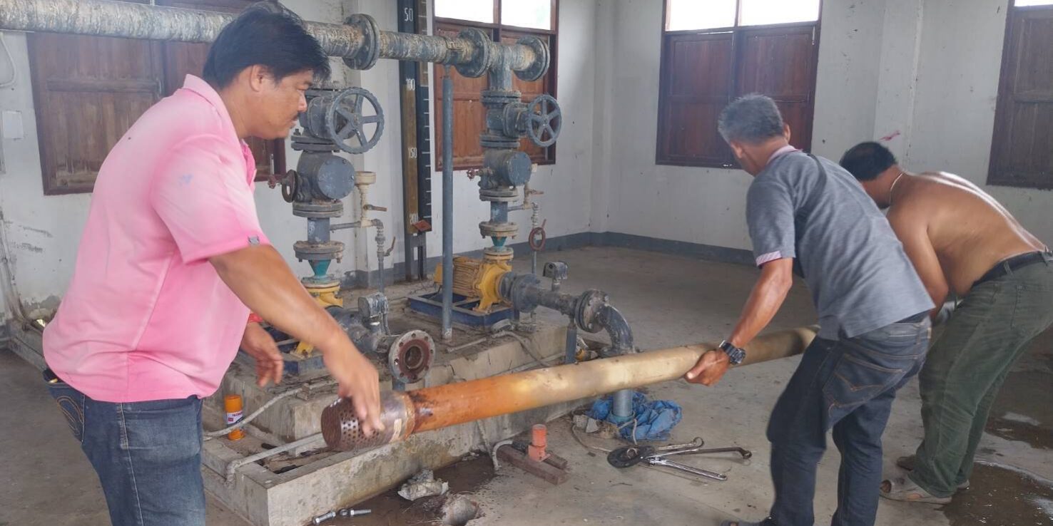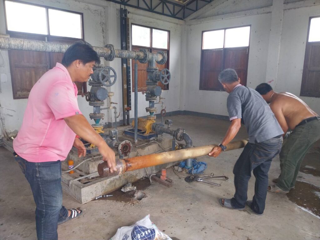 ได้มอบหมายให้ทีมงานกองช่าง อบต.หนองทรายขาว ลงพื้นที่โรงผลิตน้ำประปาของ อบต. หนองทรายขาว เพื่อทำการซ่อมแซมท่อจ่ายน้ำประปาของ อบต.หนองทรายขาว ที่จ่ายน้ำให้กับหมู่ที่ 5 หมู่ที่ 6 และหมู่ที่ 7 บางส่วน