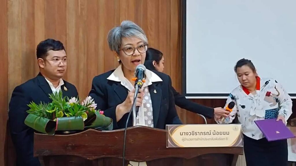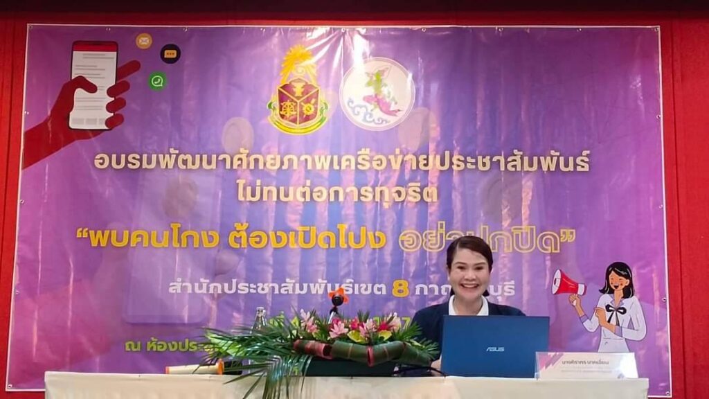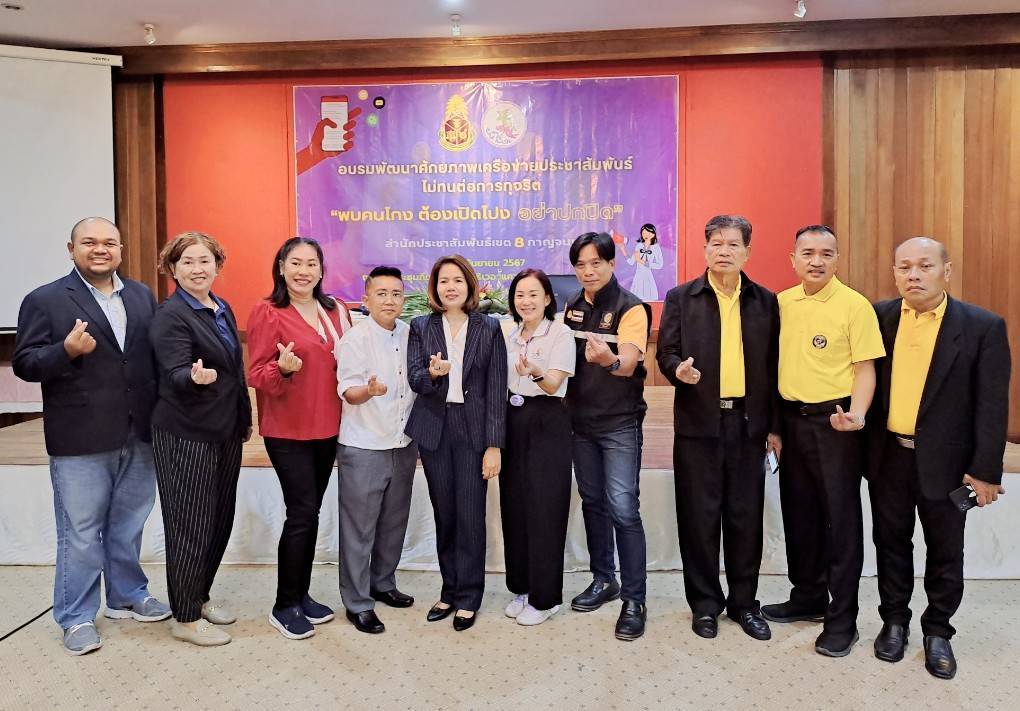 วันที่ 4 กันยายน 2567 เวลา09.00น.ณ ห้องประชุมภีมวนา รอยัล ริเวอร์แคว รีสอร์ท แอนด์สปา อำเภอเมือง จังหวัดกาญจนบุรี นางจรรยา อัมหิรัญ รองอธิบดีกรมประชาสัมพันธ์ เป็นประธานในการเปิดพิธีการอบรมพัฒนาศักยภาพเครือข่ายประชาสัมพันธ์ไม่ทนต่อการทุจริต พร้อมทั้งมอบเกียรติบัตรให้กับผู้เข้าร่วมอบรม นางวชิราภรณ์ น้อยยม ผู้อำนวยการสำนักประชาสัมพันธ์เขต 8 กล่าวต้อนรับและวัตถุประสงค์ พร้อมด้วยนายอนุ ทองดี ประชาสัมพันธ์จังหวัดกาญจนบุรี และผู้อำนวยการสถานีวิทยุกระจายเสียง ทีมงานในพื้นที่ สำนักประชาสัมพันธ์เขต 8 เครือข่ายประชาสัมพันธ์ และผู้เข้าร่วมประชุม เครือข่ายประชาสัมพันธ์ภาคประชาชน ได้แก่กำนัน ผู้ใหญ่บ้าน ผู้นำชุมชนและอาสาสมัครประชาสัมพันธ์ประจำหมู่บ้านและชุมชน(อป.มช.) ภายใต้การกำกับดูแลของสำนักประชาสัมพันธ์เขต 8 จำนวน 9 จังหวัด ประกอบด้วย จังหวัดกาญจนบุรี สุพรรณบุรี อ่างทอง ราชบุรี นนทบุรี สมุทรสาคร สมุทรสงคราม ปทุมธานี นครปฐม และบุคลากรที่เกี่ยวข้องกับการปฏิบัติงาน จำนวน 100 คน