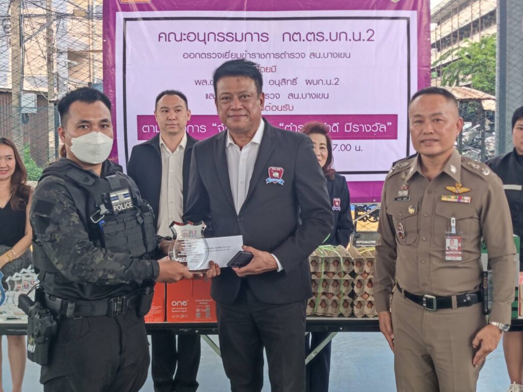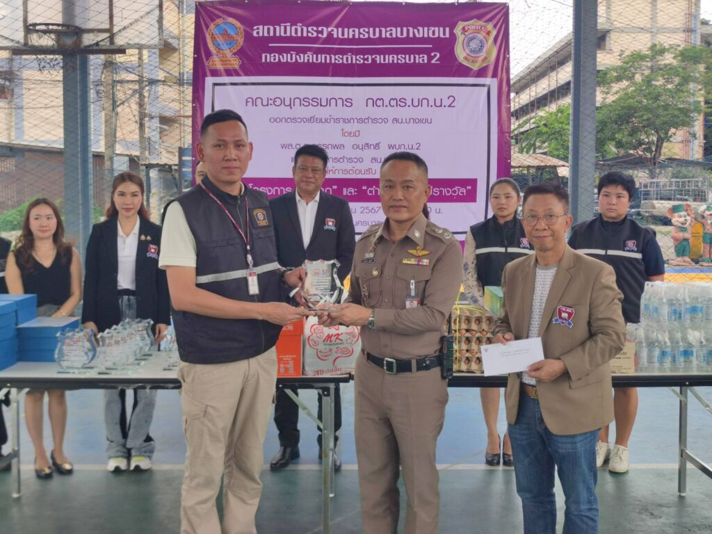 พนักงานสอบสวน อาทิเช่น เครื่อง Printer, กระดาษ A4 รวมถึงมอบอาหารและเครื่องดื่ม ตามโครงการ “จับถูก” และมอบโล่ รางวัลเเก่ข้าราชการตำรวจที่มีผลจับกุมผู้ต้องหาในคดีสำคัญ ตามโครงการ “ตำรวจทำดีมีรางวัล” เพื่อสร้างขวัญกำลังใจใจในการปฏิบัติหน้าที่แก่ข้าราชการตำรวจ ในสังกัด บก.น.น.2 โดยมี พ.ต.อ.อนันต์ วรสาตร์ ผกก.สน.บางเขน พ.ต.อ.ชิศณุพงศ์ สุริยานนท์ ผกก.สน.ทุ่งสองห้อง และข้าราชการตำรวจ สน.บางเขน และ สน.ทุ่งสองห้อง ให้การต้องรับ