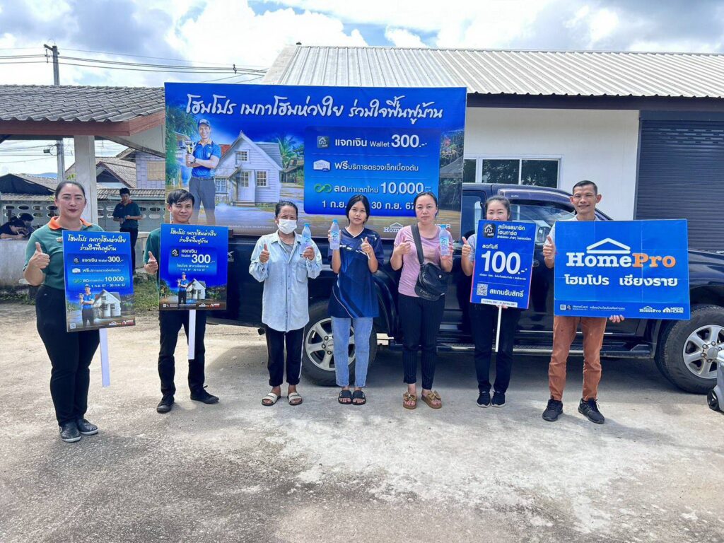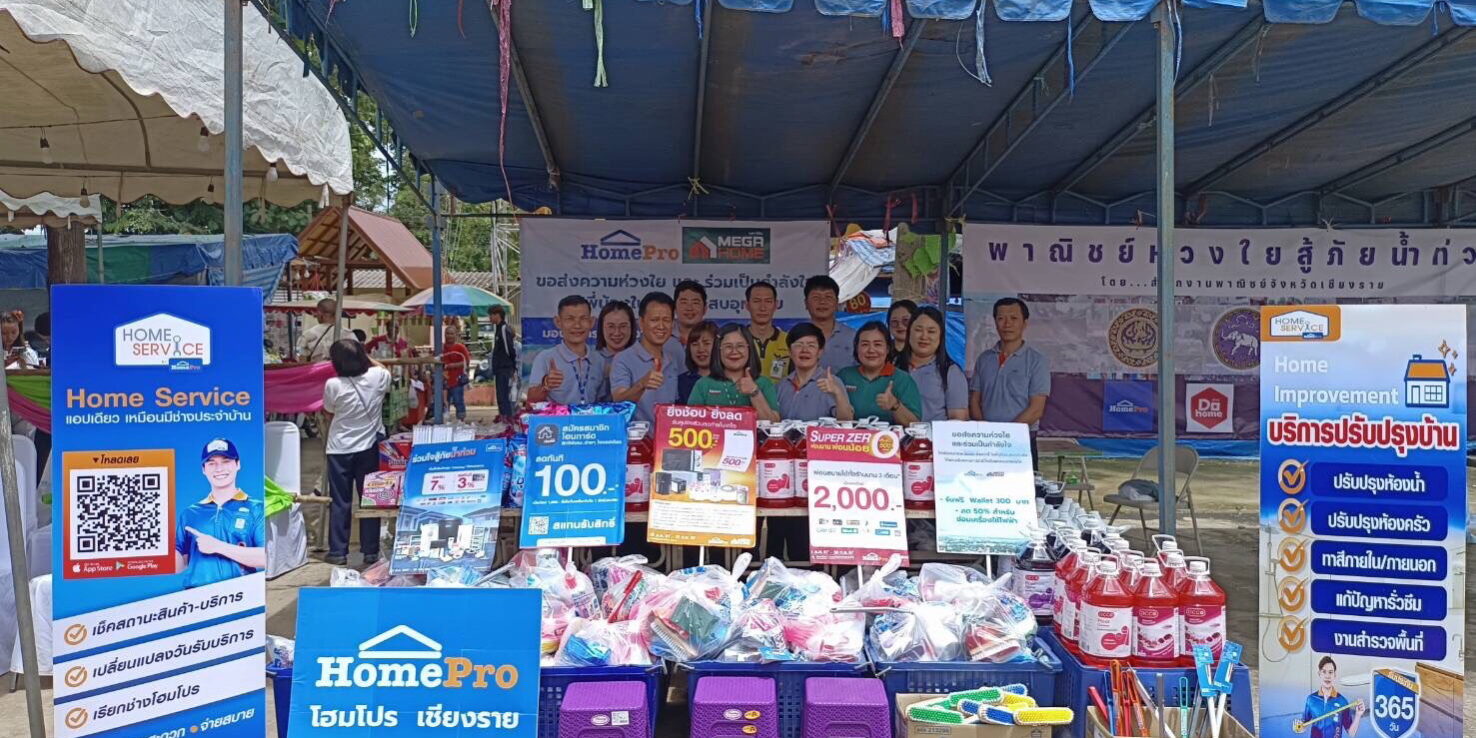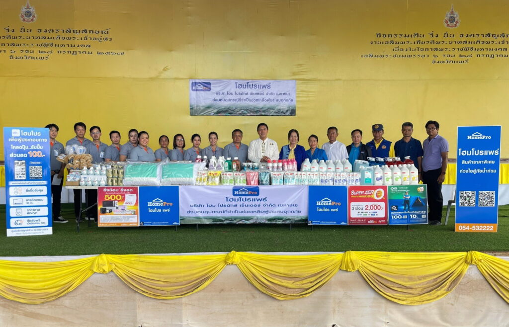 โฮมโปร มุ่งส่งต่อความห่วงใยถึงพี่น้องชาวเหนือผ่านโครงการ “โฮมโปร เมกาโฮม ห่วงใย ร่วมใจฟื้นฟูบ้าน” นำสินค้ากลุ่มอุปกรณ์ทำความสะอาด กว่า 100,000 บาท เข้าช่วยเหลือผู้ประสบอุทกภัยน้ำท่วมในภาคเหนือ จังหวัดเชียงราย และ จังหวัดแพร่ พร้อมนำทัพคาราวานโฮมโปร-เมกาโฮม ฟื้นฟูบ้านและที่อยู่อาศัย ซ่อมแซมเบื้องต้น นอกจากนี้ยังมอบเงินช่วยเหลือผ่านโฮมโปร วอลเล็ต ให้กับสมาชิกโฮมการ์ด และแจกน้ำดื่ม ซิกตี้ ดีกรี น้ำแร่ธรรมชาติ จำนวน 2,000 แพ็ค ให้กับพี่น้องชาวเหนือที่ได้รับผลกระทบจากน้ำท่วม