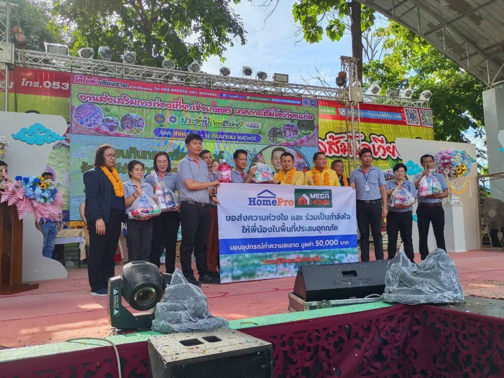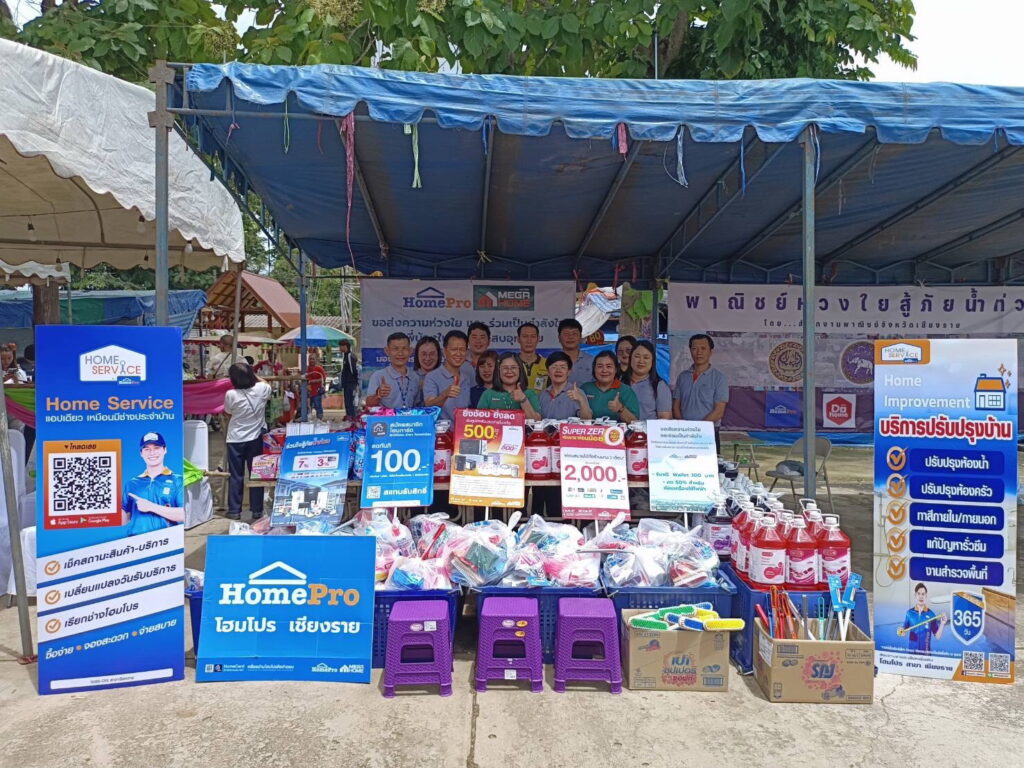 เมกาโฮม เดินทางขึ้นเหนือ เพื่อไปฟื้นฟูบ้านและที่อยู่อาศัยที่ได้รับผลกระทบจากน้ำท่วม ในจังหวัดเชียงราย และจังหวัดแพร่ ภายใต้โครงการ ‘โฮมโปร เมกาโฮมห่วงใย ร่วมใจฟื้นฟูบ้าน’ นำอุปกรณ์ซ่อมแซมบ้าน และอุปกรณ์ทำความสะอาดหลังน้ำลด อาทิ ของใช้ทำความสะอาดพื้น ถุงขยะ เจลปรับอากาศ สเปรย์ปรับอากาศ น้ำยาล้างห้องน้ำ น้ำยาดักฝุ่น ฟองน้ำ แปรงขัดพื้น สบู่เหลวล้างมือ ไปมอบให้กับหน่วยงานราชการ อาทิ สำนักงานจังหวัด, พาณิชย์จังหวัด เชียงรายและจังหวัดแพร่ เพื่อบรรเทาความเดือดร้อนและสร้างคุณภาพชีวิตที่ดีให้กับประชาชน