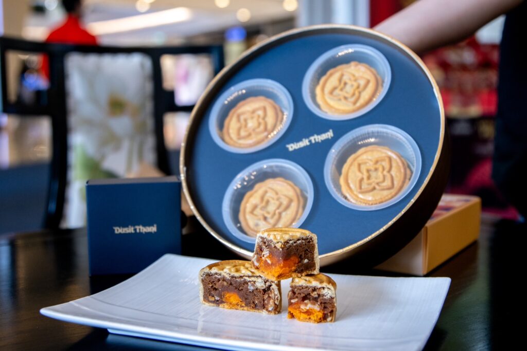 “Mooncake Mid – Autumn Festival 2024” จัดขึ้นเพื่อร่วมเฉลิมฉลองเทศกาลไหว้พระจันทร์ไปด้วยกัน เทศกาลแห่งความสุข มาที่เดียวได้ครบทุกรส หลากหลายแบรนด์จากร้านดัง แต่ละแบรนด์นอกจากรสชาติขนมไหว้พระจันทร์จะมีเอกลักษณ์อร่อยเฉพาะตัวแล้ว ยังดีไซน์กล่องใส่ขนม ทั้งสวยหรู และเก๋ไก๋น่าเก็บสะสม จะซื้อไว้รับประทานเองก็ดีหรือไว้เป็นของฝากก็ดี อาทิร้านดัง โรงแรมดุสิตธานี ด้วยธีม ‘Celestial Dance Collection’ ที่ได้รับแรงบันดาลใจจากตำนานมังกรจีนและปรากฏการณ์พระจันทร์เสี้ยว ขนมไหว้พระจันทร์ถูกสร้างสรรค์ด้วยความประณีตและพิถีพิถันในทุกขั้นตอน เพื่อมอบรสชาติและเอกลักษณ์ที่ไม่เหมือนใคร บรรจุภัณฑ์สวยงามทรงคุณค่า เหมาะสำหรับเก็บเป็นของที่ระลึกในปีมังกรทอง โรงแรมโนโวเทล “ขนมไหว้พระจันทร์ คอลเลกชั่น 2024” ที่ทางโรงแรมคัดสรรเลือกวัตถุดิบอย่างดี โดยมีเชฟจากห้องอาหารจีนโกลเด้น วิลเลจรังสรรค์อย่างประณีตทุกขั้นตอนและเปี่ยมล้นไปด้วยความหมายอันเป็นสิริมงคล จากตัวไส้ขนมและบรรจุภัณฑ์ที่สื่อถึงสิริมงคล กับ 9 รสชาติความอร่อย และสร้างความประทับใจให้แก่ทั้งผู้ให้และผู้รับ โรงแรมอนันตรา สยาม กรุงเทพฯ ภายใต้แนวคิด “EMPEROR Collection” ที่ได้แรงบันดาลใจมาจากเสื้อคลุมมังกร สัญลักษณ์ของจักรพรรดิจีนโบราณ ที่ถูกถักทออย่างปราณีตงดงาม พร้อมสีสันและลวดลายอันวิจิตรตระการตาสัมผัสความอร่อยกับขนมไหว้พระจันทร์ 5 รสชาติยอดนิยม ได้แก่ คัสตาร์ด เม็ดบัวไข่แดง ทุเรียนไข่เค็ม พุทราไข่แดง และรสชาติใหม่ล่าสุด มอคค่าอัลมอนด์ไวท์ช็อกโกแลต เป็นต้น นอกจากนี้ยังได้ฟินไปกับขนมหลากหลายสไตล์ กับร้าน S&P, Kyo Roll En, เป็งกี่ และร้านดังอื่นๆอีกมากมาย