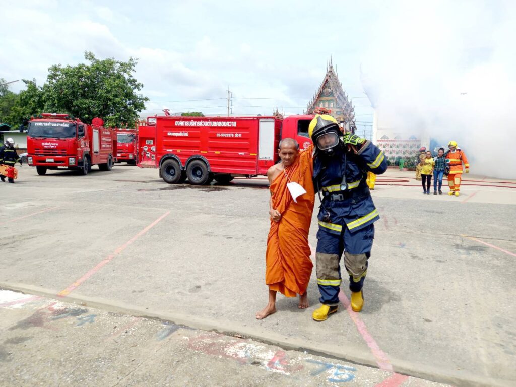 ด้านนายยอด ภู่เฉลิมตระกูล นายกองค์การบริหารส่วนตำบลคลองควาย กล่าวเสริมว่าก่อนอื่นต้องขอขอบพระคุณทุกท่านผู้ที่มาร่วมกิจกรรมในครั้งนี้ และขอขอบพระคุณพระปลัดจักรกฤษ สิทฺธิมฺโน เจ้าอาวาสวัดสุราษฎร์รังสรรค์ ที่เอื้อเฟื้อสถานที่ในการฝึกซ้อมแผนเผชิญเหตุในครั้งนี้ การฝึกซ้อมเผชิญเหตุไฟไหม้ภายในวัดในครั้งนี้ ก็เป็นไปด้วยความเรียบร้อยมีการฝึกซ้อมอย่างถูกต้องถูกหลักวิธี ไม่ว่าจะเป็นการเข้าระงับเหตุเพลิงไหม้ การปฐมพยาบาล การเรียกรถดับเพลิงโดยมีคณะครู ผู้ฝึกสอน คอยดูแลอย่างใกล้ชิด.