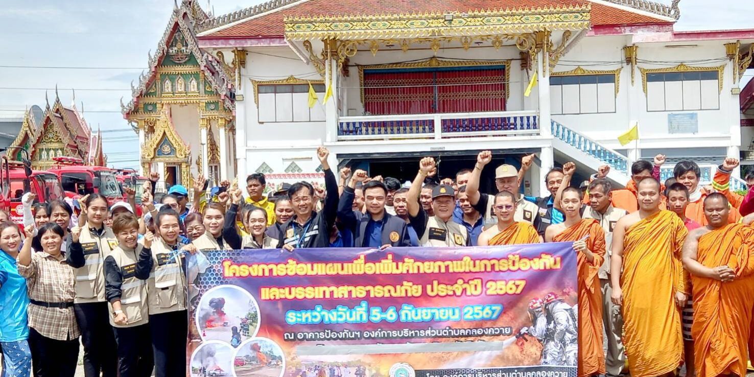 วันที่ 6 กันยายน 2567 ณ วัดสุราษฎร์รังสรรค์ (วัดดอนมะกรูด) ตำบลคลองควาย อำเภอสามโคก จังหวัดปทุมธานี นายยอด ภู่เฉลิมตระกูล นายกองค์การบริหารส่วนตำบลคลองควาย เป็นประธานเปิดโครงการซ้อมแผนเผชิญเหตุ ไฟไหม้ภายในวัด เพื่อเพิ่มประสิทธิภาพในการป้องกันและบรรเทาสาธารณภัย ประจำปีงบประมาณ พ.ศ. 2567 โดยมีปลัดอำเภอสามโคก หัวหน้าส่วนราชการ สมาชิกสภาฯ เจ้าหน้าที่ที่เกี่ยวข้อง พระสงฆ์ และประชาชนในเขตตำบลคลองควาย เข้าร่วมกิจกรรม
