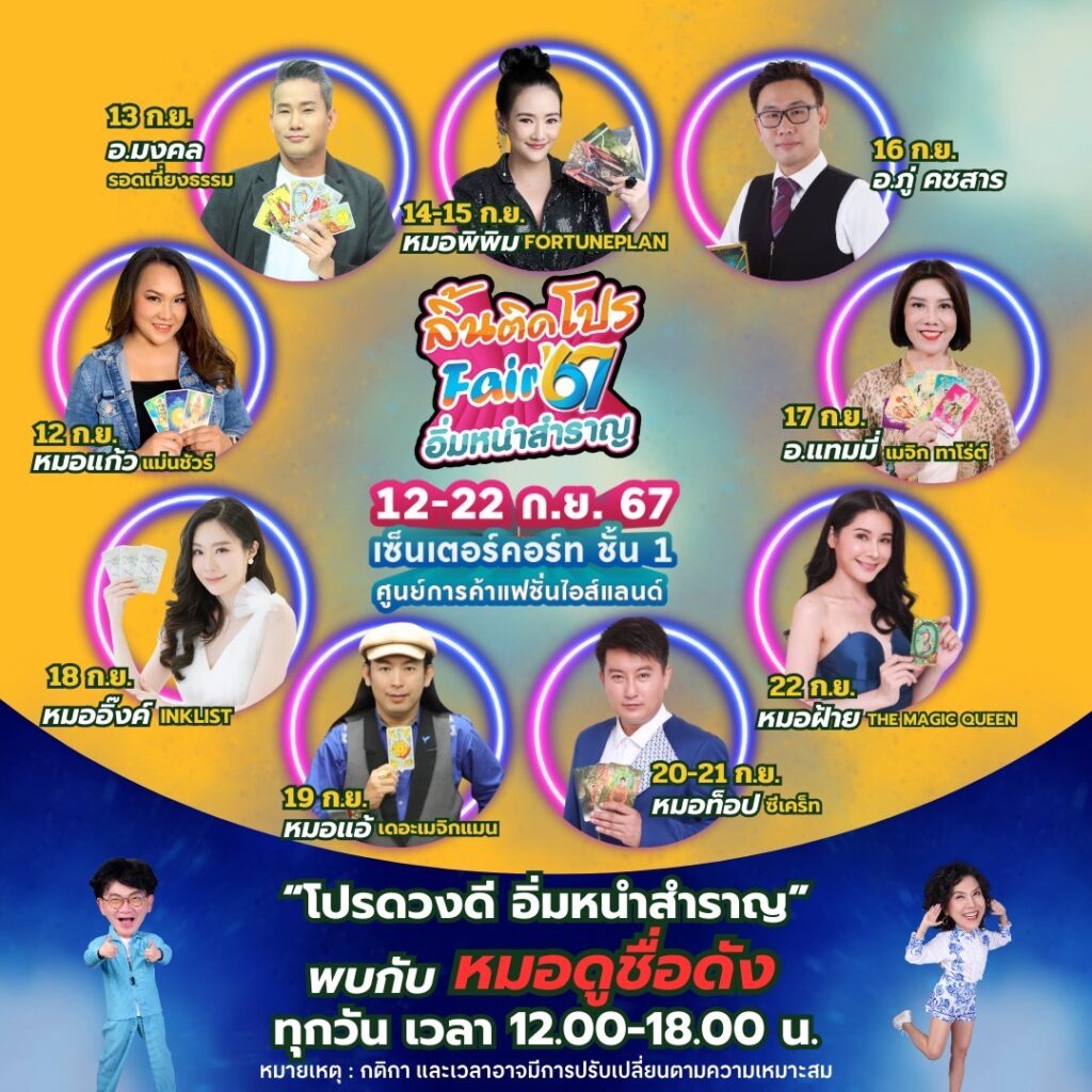 และพบกับ!!! กิจกรรมร่วมสนุก โปรดีๆ กินฟรี มีแถม!! อิ่มอร่อย, “โปรดวงดี อิ่มหนำสำราญ” พบกับ หมอดูชื่อดัง สลับสับเปลี่ยนกันมา ตลอด 11 วันเต็ม เช็คดวงกันให้ปัง!! ตลอดทั้งปี