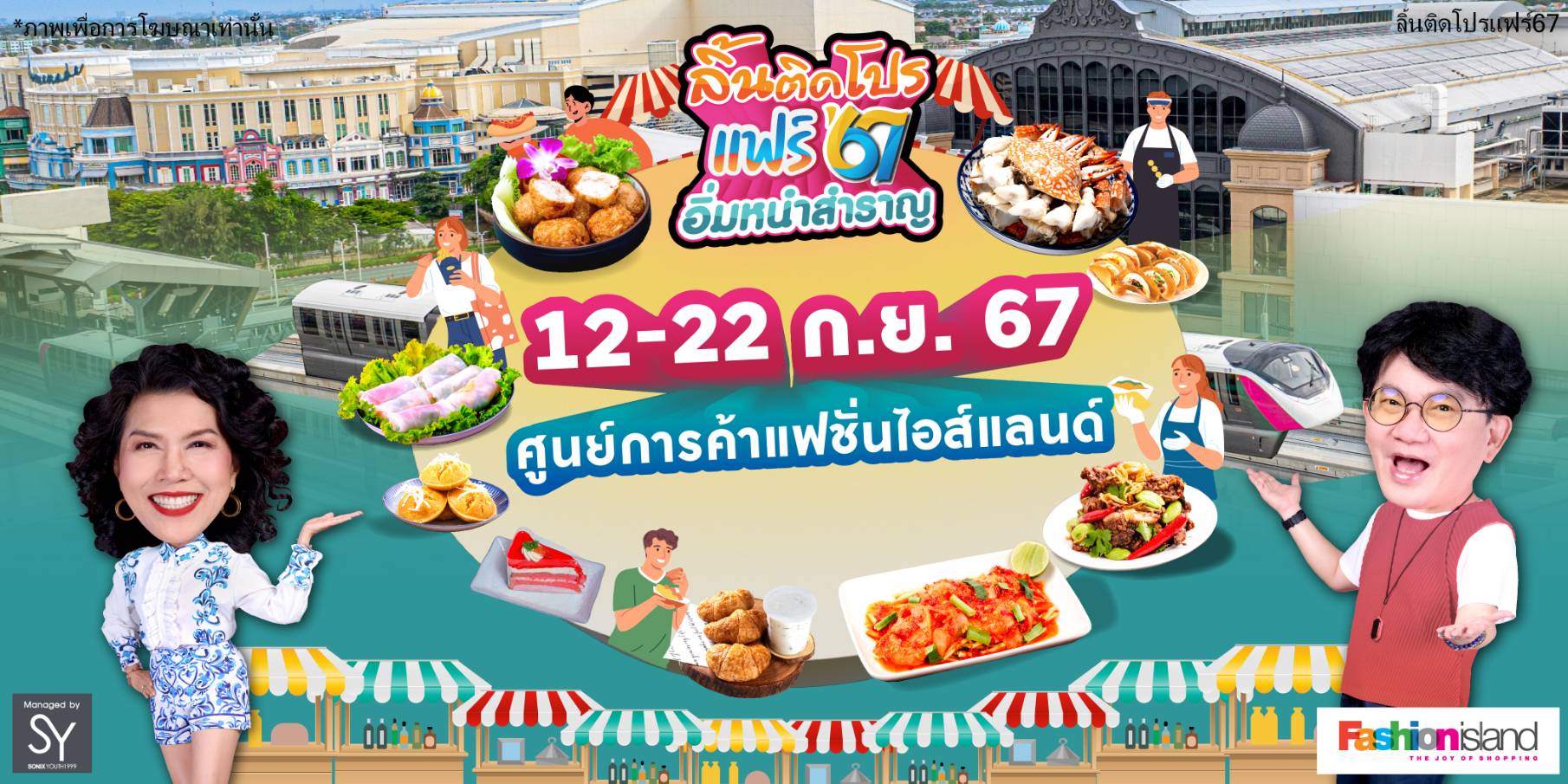 วันที่ 12-22 กันยายนนี้ มาร่วม อิ่มหนำสำราญ ในงาน “ลิ้นติดโปรแฟร์’67” ณ เซ็นเตอร์คอร์ท ชั้น 1 ศูนย์การค้าแฟชั่นไอส์แลนด์ แล้วมาพบกันนะคะ