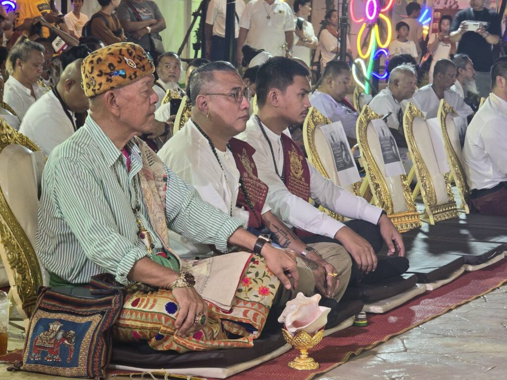 @@@บรรยากาศเต็มไปด้วยเหล่าลูกศิษย์ลูกหา ทั้งไทยและชาวต่างชาติ พร้อมด้วยเหล่าฆราวาสจอมขมังเวทย์เข้าร่วมพิธีอย่างเข้มขลัง อาทิ คุณปู่ศักดิ์ชัย เตชะวณิช ทายาทรุ่นที่ 4 ปู่ยี่กอฮง, พ่อครูเพชร บ้านพ่อครูหมอเฒ่า ตำนานเขาอ้อ จ.พัทลุง, อาจารย์วันชัย สุพรรณ, อาจารย์พิมพ์ เศรษฐีมหาลาภ และอีกกว่า 90 ท่าน