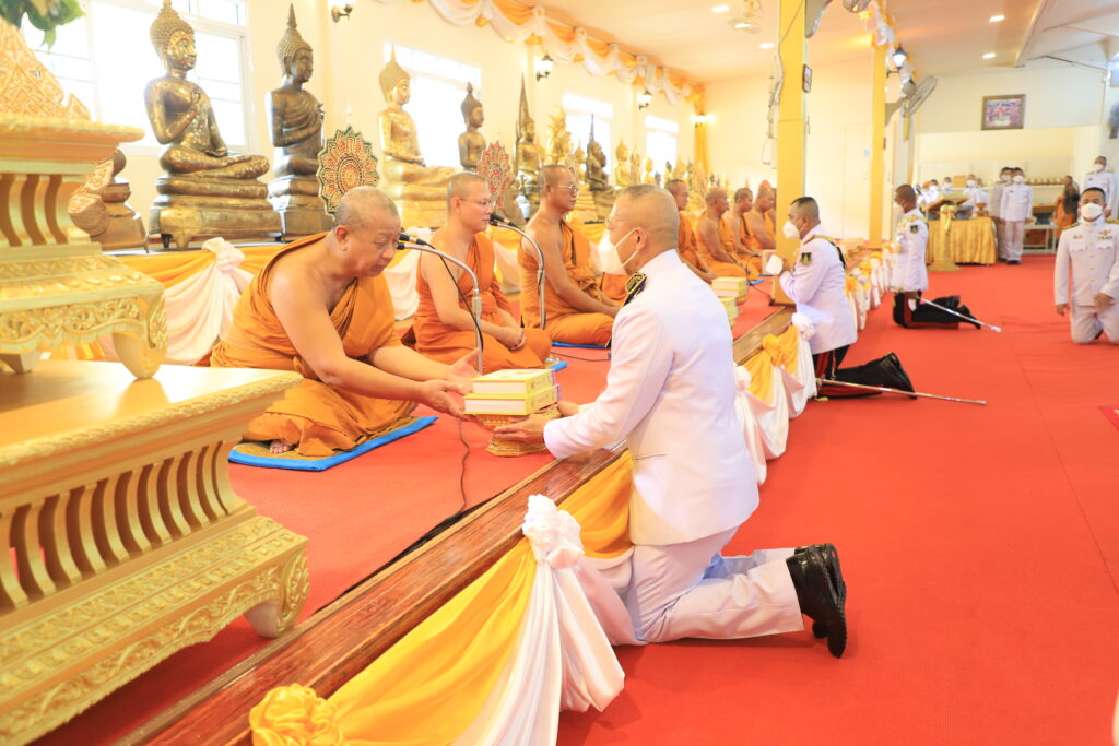 วันที่ 10 กันยายน 2567 เวลา 13.30 น. พระบาทสมเด็จพระเจ้าอยู่หัว ทรงพระกรุณาโปรดเกล้าฯ ให้ พลอากาศเอก อิทธิศักดิ์ ศรีสังข์ ประจำสำนักพระราชวังพิเศษระดับ 10 เชิญชุดหนังสือธรรมนาวา “วัง” จำนวน 300 ชุด และน้ำปานะ อาหารพระราชทานถวายแด่พระสงฆ์ในพื้นที่อำเภอพัฒนานิคม ณ วัดศรีมิ่งมงคลวราราม ตำบลโคกสลุง อำเภอพัฒนานิคม จังหวัดลพบุรี โดยมีพระภาวนาวชิรมงคล วิ.รองเจ้าคณะจังหวัดลพบุรี วัดป่าธรรมโสภณ เป็นประธานฝ่ายสงฆ์ พระครูภัทรธรรมคุณ เจ้าคณะอำเภอพัฒนานิคม วัดพัฒนาธรรมาราม พร้อมด้วยคณะสงฆ์จังหวัดลพบุรี นายอำพล อังคภากรณ์กุล ผู้ว่าราชการจังหวัดลพบุรี ส่วนราชการ ศาล ทหาร ตำรวจ ผู้นำท้องที่ ผู้นำท้องถิ่น เข้าร่วมพิธีในการนี้ พระเมธีวชิรดิลก ผู้ช่วยเจ้าอาวาสวัดชูจิตธรรมารามพระอารามหลวง รักษาการเจ้าอาวาสวัดป่า ศรีอุทุมพร จังหวัดสระบุรี ได้บรรยายพิเศษในการเผยแพร่พระรัตนตรัยโดยใช้หลักธรรมพระราชทาน ธรรมนาวา “วัง” แก่คณะสงฆ์ และพุทธศาสนิกชนภายในงานอีกด้วย
