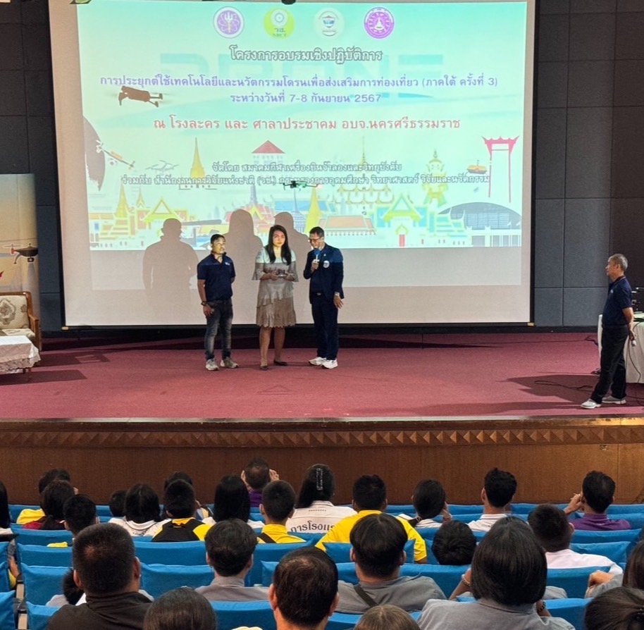 เมื่อวันเสาร์ที่ 7 กันยายน 2567 สำนักงานการวิจัยแห่งชาติ (วช.) กระทรวงการอุดมศึกษา วิทยาศาสตร์ วิจัยและนวัตกรรม (อว.) ร่วมกับ องค์การบริหารส่วนจังหวัดนครศรีธรรมราช และสมาคมกีฬาเครื่องบินจำลองและวิทยุบังคับ จัดการอบรมเชิงปฏิบัติ เรื่อง “การประยุกต์ใช้เทคโนโลยีและนวัตกรรมโดรนเพื่อส่งเสริมการท่องเที่ยว” โดยมี ดร.วิภารัตน์ ดีอ่อง ผู้อำนวยการสำนักงานการวิจัยแห่งชาติ เป็นประธานในพิธี โดยมีนางกนกพร เดชเดโช นายกองค์การบริหารส่วนจังหวัดนครศรีธรรมราช พร้อมด้วยผู้บริหารในส่วนพื้นที่ให้การต้อนรับ ณ ห้องประชุมศาลาประชาคม โรงละคร ชั้น 3 องค์การบริหารส่วนจังหวัดนครศรีธรรมราช จังหวัดนครศรีธรรมราช