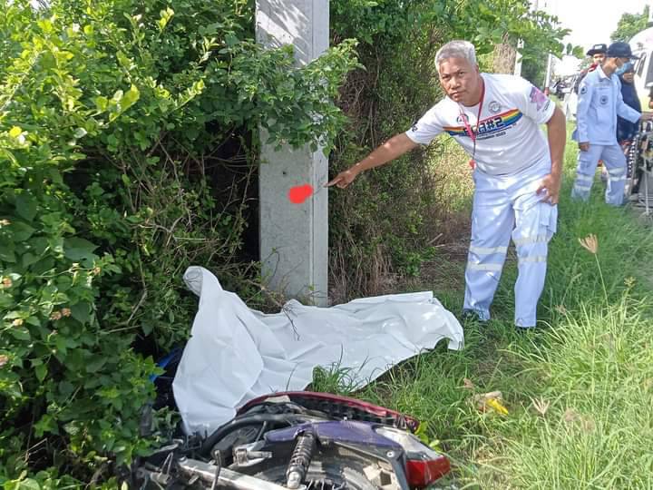 เมื่อวันนี้ 10 กันยายน 2567 เวลา 08.30 น. พ.ต.ต.อำนาจ นิ่มนวล สว.เวรสอบสวน สภ.คูบางหลวง จังหวัดปทุมธานี ได้รับแจ้งมีอุบัติเหตุรถจักรยานยนต์ เสียหลักเฉี่ยวชนเสาไฟฟ้า ส่งผลให้มีผู้เสียชีวิตเป็นชาย 1 ราย ที่เกิดเหตุภายในซอยบางเตย บริเวณหมู่ 5 ตำบลคูขวาง อำเภอลาดหลุมแก้ว จังหวัดปทุมธานี ภายหลังรับแจ้ง จึงรุดไปตรวจสอบที่เกิดเหตุ พร้อมด้วย เจ้าหน้าที่ตำรวจสายตรวจจราจร ,เจ้าหน้าที่กู้ชีพ อบต.คูขวาง และเจ้าหน้าที่อาสาสมัครมูลนิธิป่อเต็กตึ้ง, เร่งให้การช่วยเหลือ
