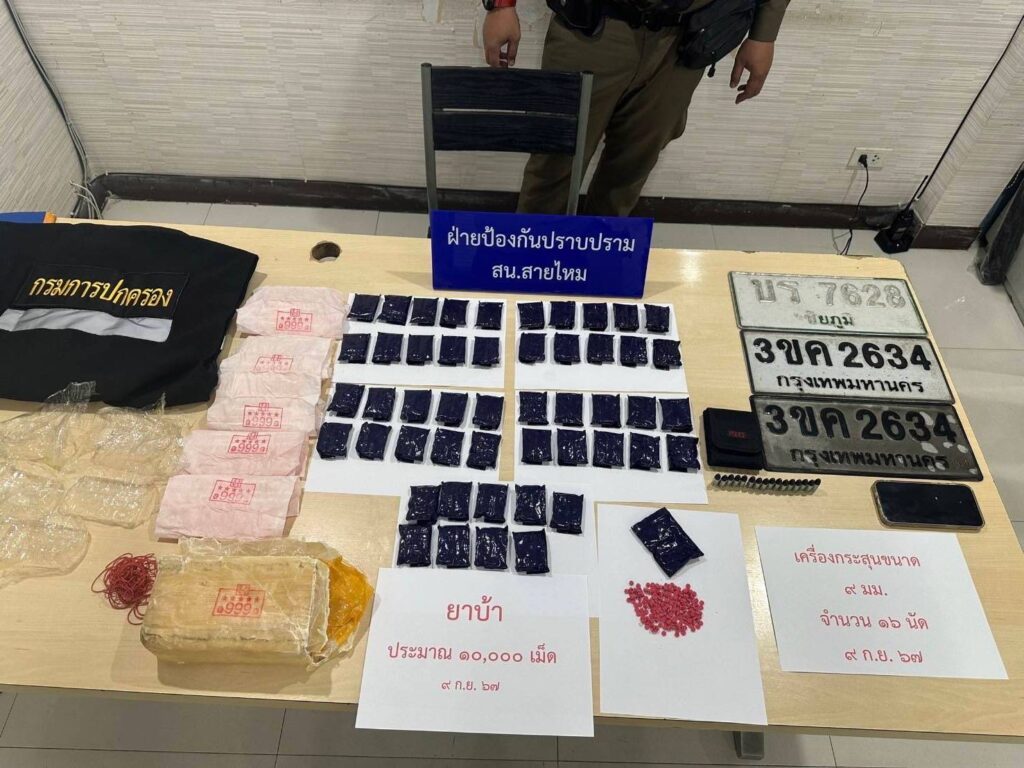 เมื่อเวลา 11.00 น. วันที่ 10 ก.ย. ภายใต้การอำนวยการของ พล.ต.ต.อรรถพล อนุสิทธิ์ ผบก.น.2 พ.ต.อ.ศักดิ์สิทธิ์ มีสวัสดิ์ รอง ผบก.น.2 โดย พ.ต.อ.รังสรรค์ สอนสิงห์ ผกก.สน.สายไหม พ.ต.ท.สัญชัย คีรีรัตน์ รอง ผกก.ป.สน.สายไหม พ.ต.ท.นุกูล กิ่งเกล้า สวป.สน.สายไหม ร.ต.อ.พงศ์พัฒน์ เกิดนพนันท์ รอง สวป.สน.สายไหม และ เจ้าพนักงานตำรวจสายตรวจ ชุดเคลื่อนที่เร็ว สน.สายไหม ได้ร่วมกันจับกุมตัวนายกิตติพศ หรือออย อายุ 25 ปี พร้อมของกลางยาเสพติดให้โทษประเภท 1 (ยาบ้า) จำนวน 10,000 เม็ด กระสุนปืน ขนาด 9 มม. จำนวน 16 นัด โดยจับกุมได้บริเวณ ถนนเลียบคลองสอง ใกล้สะพานเพิ่มสิน แขวงคลองถนน เขตสายไหม กรุงเทพ เมื่อ 22.30 น. ( 9 ก.ย.) ที่ผ่านมา