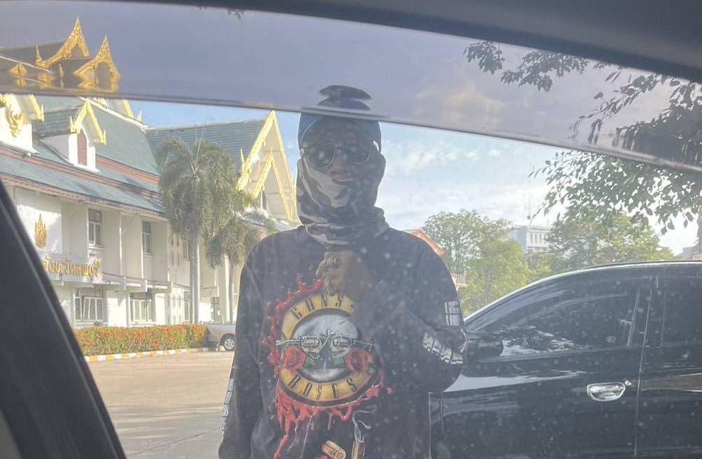 รูปลักษณ์ของคนร้ายใส่แว่นตาดำ เอาผ้าโพกหน้า