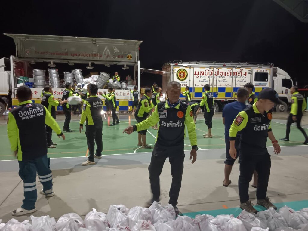 และในขณะนี้ มูลนิธิป่อเต็กตึ๊ง ยังคงอยู่ระหว่างปฏิบัติการภารกิจอพยพในพื้นที่ต่อเนื่อง รวมทั้งประกอบอาหารปรุงสุก พร้อมจัดเตรียมน้ำดื่ม และถุงยังชีพ เพื่อบรรทุกรถและเรือ ลงพื้นที่แจกจ่ายให้แก่ผู้ประสบภัยน้ำท่วมใน และเฝ้าติดตามสถานการณ์อย่างต่อเนื่อง เพื่อประเมินและเข้าให้ความช่วยเหลือผู้ประสบภัยด้านต่าง ๆ ต่อไป