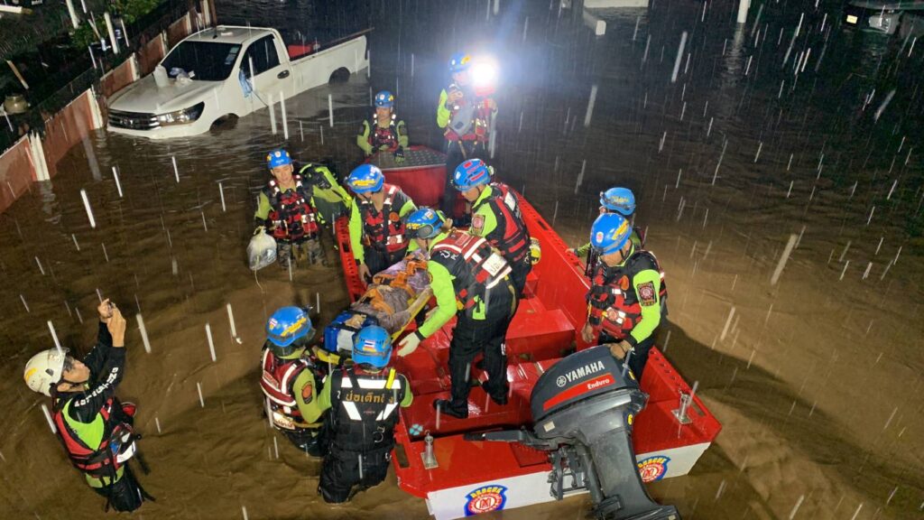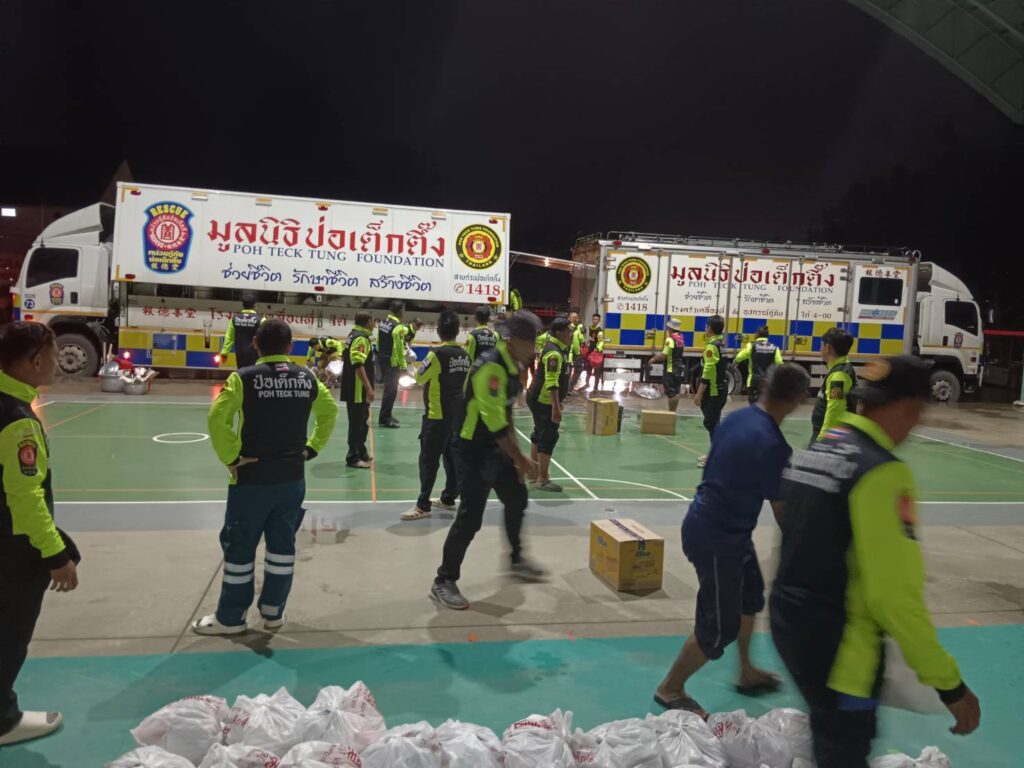 ตามที่ได้เกิดฝนตกหนักต่อเนื่องในพื้นที่จังหวัดเชียงราย ส่งผลให้เกิดอุทกภัยขึ้นในพื้นที่ ประชาชนได้รับความเดือดร้อน และเสียหายเป็นจำนวนมาก ค่ำวานนี้ (วันที่ 10 กันยายน 2567) นายวิเชียร เตชะไพบูลย์ ประธานกรรมการ มูลนิธิป่อเต็กตึ๊ง มอบหมายให้นายอรัณย์ โตทวด ผู้จัดการใหญ่มูลนิธิฯ จัดทีมบรรเทาสาธารณภัย นำโดย นายวรพจน์ จรัสเศรษฐสิริ รักษาการผู้ช่วยผู้จัดการฝ่ายปฏิบัติการ นำทีมกู้ภัย กู้ชีพ อาสาสมัคร พร้อมเรือท้องแบน อุปกรณ์กู้ภัยทางน้ำ รถยกสูง 4×4 รถพยาบาลขับเคลื่อน 4 ล้อ โรงครัวเคลื่อนที่ ถุงยังชีพ ชุดยาสามัญประจำบ้าน อาหารสุนัขและแมว เร่งลงพื้นที่จังหวัดเชียงราย ให้ความช่วยเหลือช่วยเหลือผู้ประสบภัยน้ำท่วมในทันที โดยมูลนิธิฯ ได้เดินทางถึงอำเภอแม่สายเมื่อช่วงเย็นของวันที่ 11 กันยายน 2567 และเร่งดำเนินการจัดตั้งกองอำนวยการและโรงครัวประกอบอาหารปรุงสุก ณ โรงเรียนแม่สายประสิทธิ์ศาสตร์ อำเภอแม่สาย จังหวัดเชียงราย พร้อมจัดทีมปฏิบัติการเร่งให้ความช่วยเหลือในทันที นำน้ำดื่มเข้าพื้นที่แจกจ่ายให้กับผู้ประสบภัย ดำเนินการอพยพประชาชน ช่วยเหลือผู้บาดเจ็บ และผู้ป่วยออกนอกพื้นที่ประสบภัยไปยังพื้นที่ปลอดภัยอย่างต่อเนื่อง โดยมี นายภรัณยู โรจนวุฒิธรรม (แทค ภรัณยู) อาสาสมัครศิลปิน พร้อมด้วยหน่วยกู้ภัยฉะเชิงเทรา ร่วมปฏิบัติภารกิจในครั้งนี้