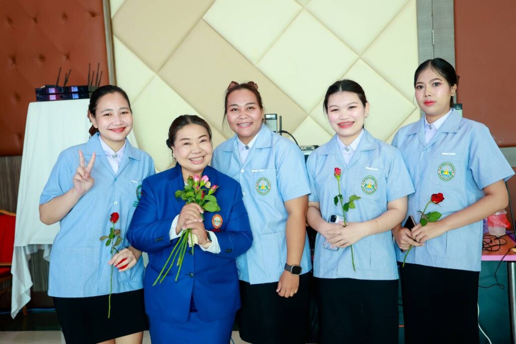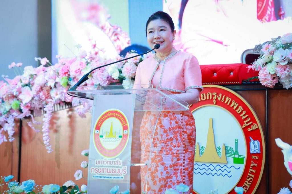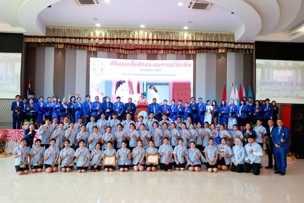 วันที่ 12 กันยายน 2567 ศาสตราจารย์ ดร.บังอร เบ็ญจาธิกุล อธิการบดีมหาวิทยาลัยกรุงเทพธนบุรี (มกธ.) เป็นประธานในพิธีมอบเข็มวิทยฐานะและเสื้อฝึกประสบการณ์วิชาชีพให้แก่นักศึกษาชั้นปีที่ 3 พร้อมทั้งมอบเสื้อฝึกประสบการณ์วิชาชีพให้แก่นักศึกษาชั้นปีที่ 4 หลักสูตรสาธารณสุขศาสตรบัณฑิต คณะสาธารณสุขศาสตร์ มหาวิทยาลัยกรุงเทพธนบุรี ประจำปีการศึกษา 2567 พร้อมกล่าวให้โอวาทและแสดงความยินดีแก่นักศึกษาที่เข้าร่วมในพิธีดังกล่าวด้วย