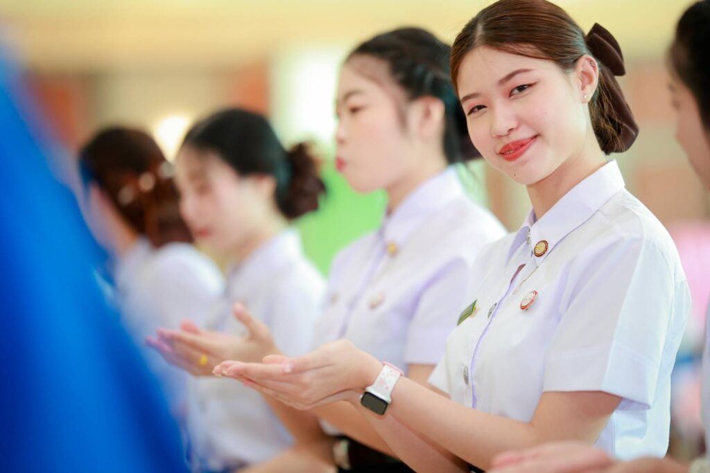 ในการนี้ คณะผู้บริหาร คณาจารย์ ร่วมแสดงความยินดี และสวมเสื้อฝึกประสบการณ์วิชาชีพ พร้อมติดเข็มวิทยฐานะให้แก่นักศึกษาที่เข้าร่วมในพิธีดังกล่าว โดยมีผู้ปกครองมาร่วมแสดงความยินดีกับนักศึกษาในโอกาสนี้ด้วย ณ อาคารศูนย์ปฏิบัติการ การโรงแรมและการท่องเที่ยว ชั้น 2 มหาวิทยาลัยกรุงเทพธนบุรี