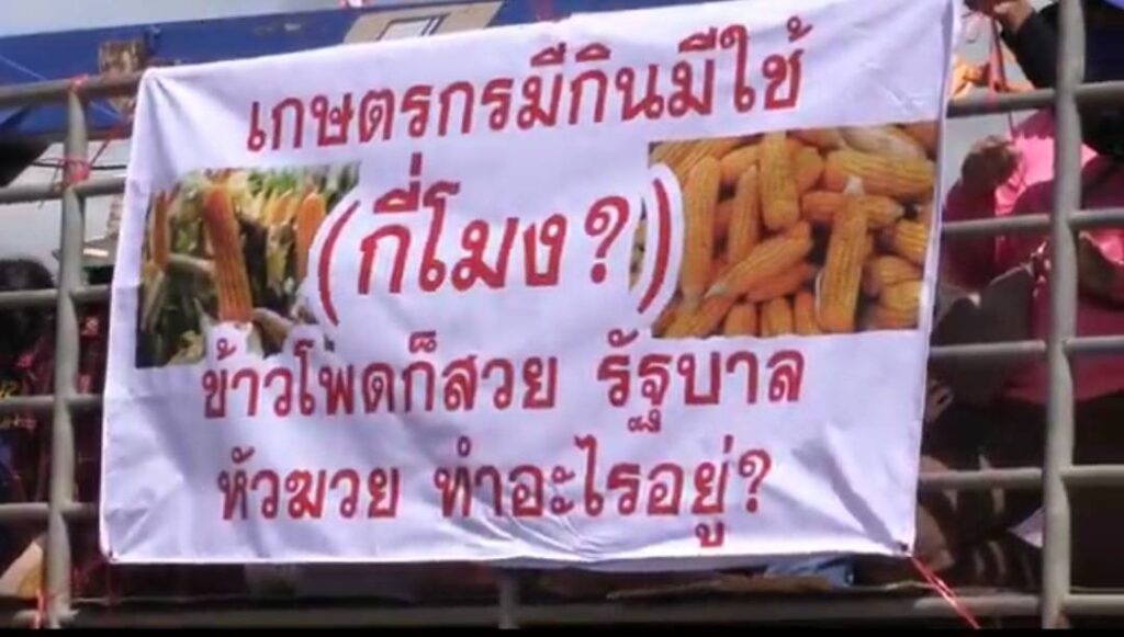 จากนั้นนายถาวร จงวัฒน์ ตัวแทนเกษตรผู้ปลูกข้าวโพดเลี้ยงสัตว์ จ.เพชรบูรณ์ ยังได้กล่าวปราศรัยโดยสรุปว่า สาเหตุที่ราคาก็พูดเลี้ยงสัตว์ปี 2567 ต่ำกว่าต้นทุนการผลิต เพราะปุ๋ยเมล็ดพันธุ์ รวมถึงค่าแรง มีราคาที่สูงมาก และทางโรงงานอาหารสัตว์ยังนำเข้าข้าวสาลีและข้าวโพดจากต่างประเทศเข้ามาเป็นจำนวนมาก ส่งผลให้มีการใช้ข้าวโพดภายในประเทศลดลง ทางโรงงานอาหารสัตว์จึงปรับราคารับซื้อข้าวโพดลดลงต่อเนื่องมากกว่าสัปดาห์ โดยราคาลดลงแบบผิดปกติมากกว่า 1 บาทต่อกิโลกรัม จนทำให้การซื้อขายในวันนี้ความชื้น 30% ราคาลดลงเหลือ 6.70 บาท และยังมีแนวโน้มราคาจะลดลงอีก
