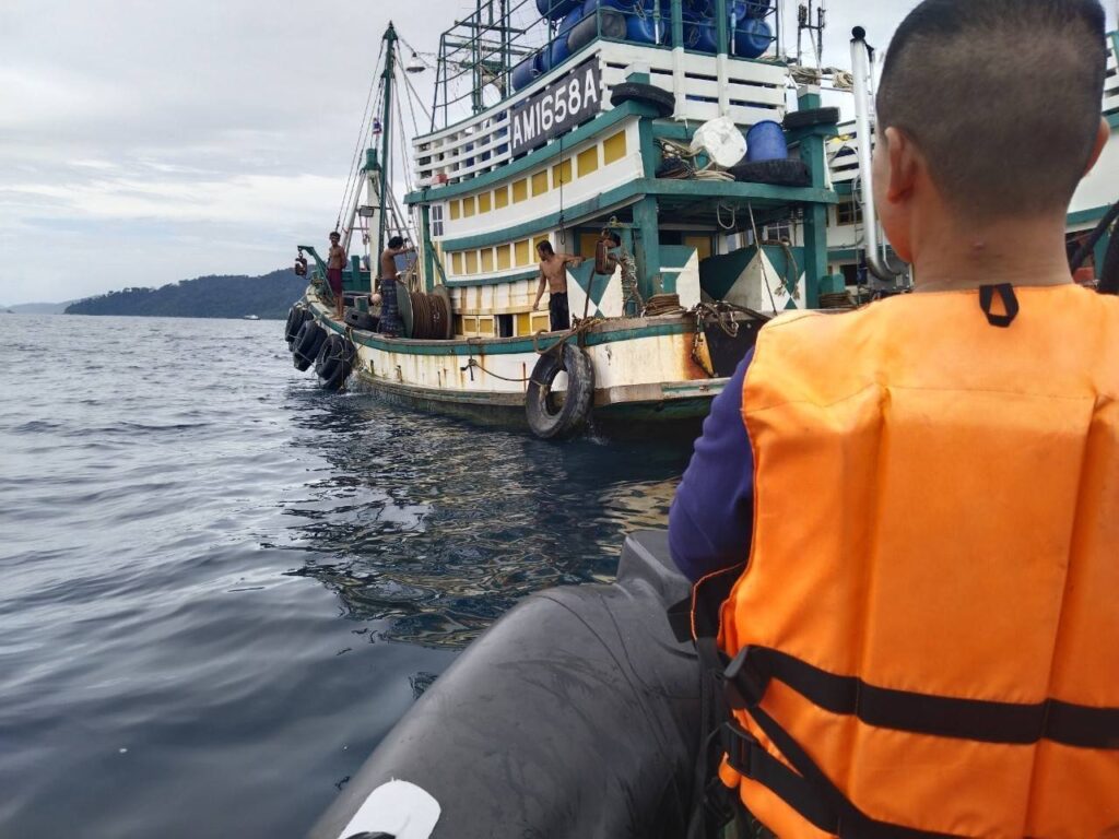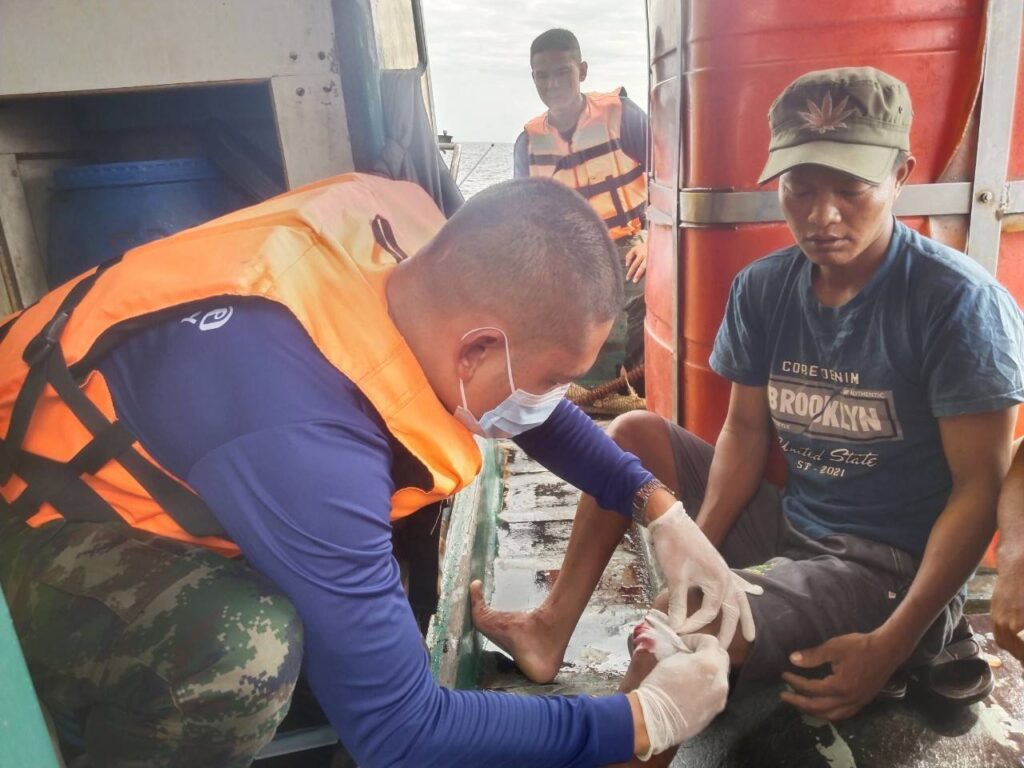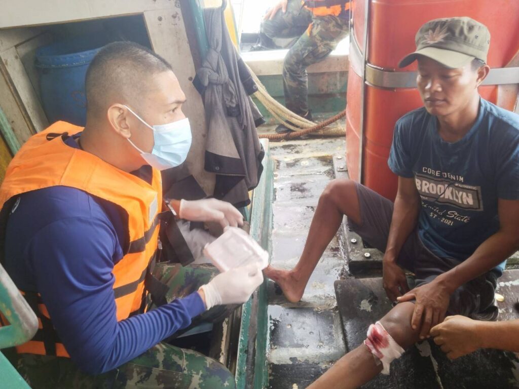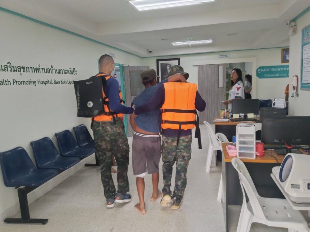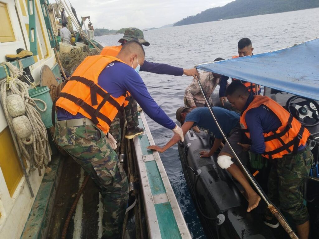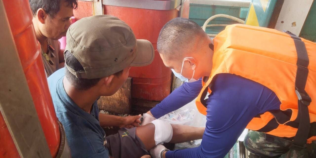 วันนี้ 12 กันยายน 2567 ศูนย์อำนวยการรักษาผลประโยชน์ของชาติทางทะเลภาค 3 โดยศูนย์อำนวยการรักษาผลประโยชน์ของชาติทางทะเลจังหวัดสตูล ได้รับแจ้งจาก พ.ต.ท.บรรเจิด มานะเวช รอง ผกก.9 บก.รน. ว่ามีลูกเรือประมงสิงห์เดโช 5 ประสบอุบัติเหตุได้รับบาดเจ็บสาหัสกลางทะเล อยู่บริเวณ แลต 6องศา 29.521 ลิปดา น. ลอง 99 องศา 19.780 อ. ระยะห่างจากเกาะหลีเป๊ะประมาณ 2.4 ไมล์ทะเล ทางด้านทิศตะวันออกเฉียงเหนือของเกาะหลีเป๊ะ ขอความช่วยเหลือรับส่ง โรงพยาบาลสตูลเกาะหลีเป๊ะ เป็นการเร่งด่วน ศูนย์อำนวยการรักษาผลประโยชน์ของชาติทางทะเลจังหวัดสตูล จึงได้ประสานกับ หน่วยปฏิบัติการต่อสู้อากาศยานและรักษาฝั่งที่491 (เกาะหลีเป๊ะ) ในการนี้ หน่วยปฏิบัติการต่อสู้อากาศยานและรักษาฝั่งที่491 (เกาะหลีเป๊ะ)ได้จัดเรือยางท้องแข็ง (RHIB) พร้อมเจ้าหน้าที่ชุดบรรเทาสาธารณะภัยทางทะเล และเจ้าหน้าที่พยาบาลประจำหน่วย เดินทางไปยังจุดเกิดเหตุ พบเรือประมงสิงห์เดโช 2 และสิงห์เดโช 4จอดทอดสมอเทียบกันอยู่ และพบผู้ประสบเหตุ ชื่อ Mr.Maung Sa Win อายุ 35 ปี เพศชาย สัญชาติเมียนมา คนประจำเรือประมงสิงห์เดโช 2 ประสบเหตุ ลื่นล้มบนเรือ มีบาดแผลฉีกขาดใต้เข่า ซ้ายยาว 10 ซม. ลึก 12 ซม. รู้สึกตัวดี เจ้าหน้าที่พยาบาลประจำหน่วย ทำการปฐมพยาบาลปิดบาดแผล ห้ามเลือด แล้วนำส่งที่ โรงพยาบาลสตูลเกาะหลีเป๊ะ โดยแพทย์ทำการเย็บบาดแผล จำนวน 11 เข็ม พร้อมให้ยาฆ่าเชื้อทางหลอดเลือด ผู้ป่วยได้รับการรักษาอยู่ในขั้นปลอดภัย แพทย์อนุญาตให้ออกจากโรงพยาบาลได้ ทั้งนี้หน่วยปฏิบัติการต่อสู้อากาศยานและรักษาฝั่งที่491 (เกาะหลีเป๊ะ)ได้นำตัวผู้ประสบเหตุรายดังกล่าวส่งกลับที่เรือประมงสิงห์เดโช 2