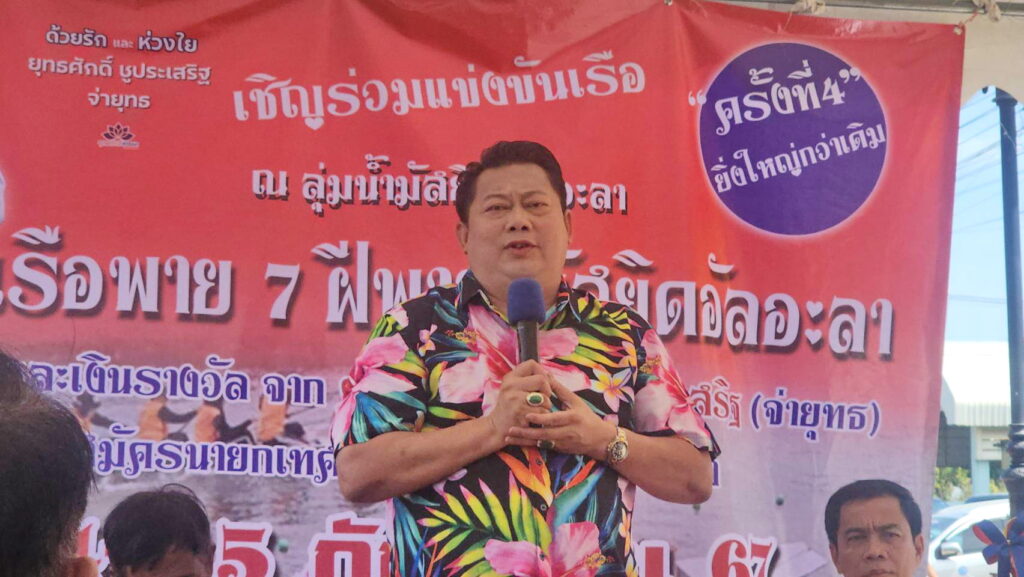 ด้านนายยุทธศักดิ์ ชูประเสริฐ กล่าวว่า สำหรับผมและทีมยุทธศักดิ์พัฒนาที่ได้เข้ามาในชุมชนจึงอยากที่จะมีส่วนร่วมเรื่องการกีฬา เรื่องความสามัคคี ผมได้สนับสนุนในการจัดการแข่งขันเรือในครั้งนี้ เป็นการแข่งขันระหว่างชาวไทยพุทธร่วมกับชาวอิสลาม เป็นการแข่งขันที่สนุกสนาน ทีมยุทธศักดิ์พัฒนาเราได้พัฒนาหลายด้านทุกมิติในชุมชนคลองหลวง ได้ปรับปรุงซ่อมแซมถนน สะพาน นอกจากนี้ยังได้รับการเสนอจากชาวบ้านชาวชุมชนในการพัฒนาด้านต่างๆ ซึ่งผมและทีมงานก็เตรียมพร้อมและเข้าไปทำและแก้ไขปัญหาให้ทั้งหมด วันนี้ดีใจที่ได้เห็นรอยยิ้มของพ่อแม่พี่น้องที่มาร่วมชมการแข่งขันเรือจำนวนมาก