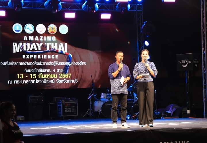 วันที่ 13 กันยายน 2567 เวลา 19.00 น. ที่ พระนารายณ์ราชนิเวศน์ ลพบุรี นายอำพล อังคภากรณ์กุล ผู้ว่าราชการจังหวัดลพบุรีพร้อมด้วยนายอภิชัย ฉัตรเฉลิมกิจ รองผู้ว่าการด้านสินค้าและธุรกิจท่องเที่ยวเป็นประธานเปิดงาน Amazing Muay Thai Experience ย้อนรอยตำนานมวยไทยโบราณภาคกลาง “มวยลพบุรี” โดยมีหัวหน้าส่วนราชการ ครูมวย และประชาชนผู้สนใจทั้งชาวไทยและต่างชาติเข้าร่วมเป็นจำนวนมาก