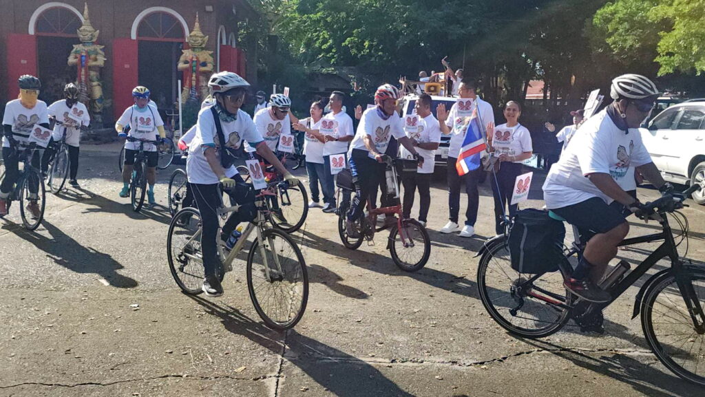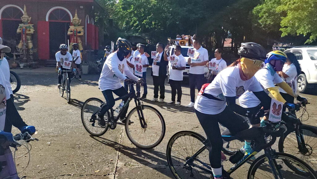 นายพงศธรรศ รุจิพุฒธันยพัต นายกสมาคมนักข่าวจังหวัดปทุมธานี กล่าวว่า ขอขอบุคุณสมาชิกทุกท่านที่มาร่วมประชาสัมพันธ์ให้กับประชาชนออกมาใช้สิทธิใช้เสียงให้เยอะที่สุด เนื่องด้วยการเลือกตั้งนายก องค์การบริหารส่วนจังหวัดปทุมธานีใหม่ใช้เวลาอย่างรวดเร็วการประชาสัมพันธ์ยังไม่เข้าถึงประชาชนเท่าที่ควรเราจึงร่วมกัน ช่วยประชาสัมพันธ์โดยใช้จักรยานเพื่อให้เข้าถึงประชาชนให้มากที่สุดโดยเฉพาะการชุมชนต่างๆที่รถจักรยานสามารถเข้าไป ประชาสัมพันธ์ได้อย่างทั่วถึง ขอให้ทุกท่านเดินทางโดยปลอดภัย ถึงปลายทางโดยสวัสดิภาพ และขอให้มีความสุขทุกคน โอกาสหน้ามีโครงการขอให้ทุกท่านร่วมโครงการด้วยกันอีก สำหรับโครงการลูกปทุมต้นแบบต้านโกงนี้จัดตั้งมาตั้งแต่ปี 2561 โครงการแรกคือการพานักเรียนนักศึกษา จำนวน 3,500 คนออกไปดูเกี่ยวกับการต้านโกง การต้านทุจริตต่างๆ ที่พิพิธภัณฑ์ต้านโกง ป.ป.ช. ถนนพิษณุโลก เขตดุสิต กรุงเทพฯ และได้มีกิจกรรมชิงทุนการศึกษา การประกวดร้อยแก้วร้อยกรอง และประกวดสุนทรพจน์ เพื่อปลูกฝังตั้งแต่เด็ก คือให้มีความคิดความอ่านที่ถูกต้อง ไม่มีการโกง ไม่มีการทุจริต เป็นการต่อยอดให้ลูกหลานของเรา โตขึ้นมาจะได้ไม่มีการทุจริต ทำงานอย่างเต็มที่ เมื่อเด็กพวกนี้ได้โตเป็นผู้ใหญ่หรือเป็นนักการเมืองจะมีความคิดที่ดี ได้พัฒนาในท้องถิ่นของตัวเองโดยไม่มีการโกงไม่มีการทุจริต